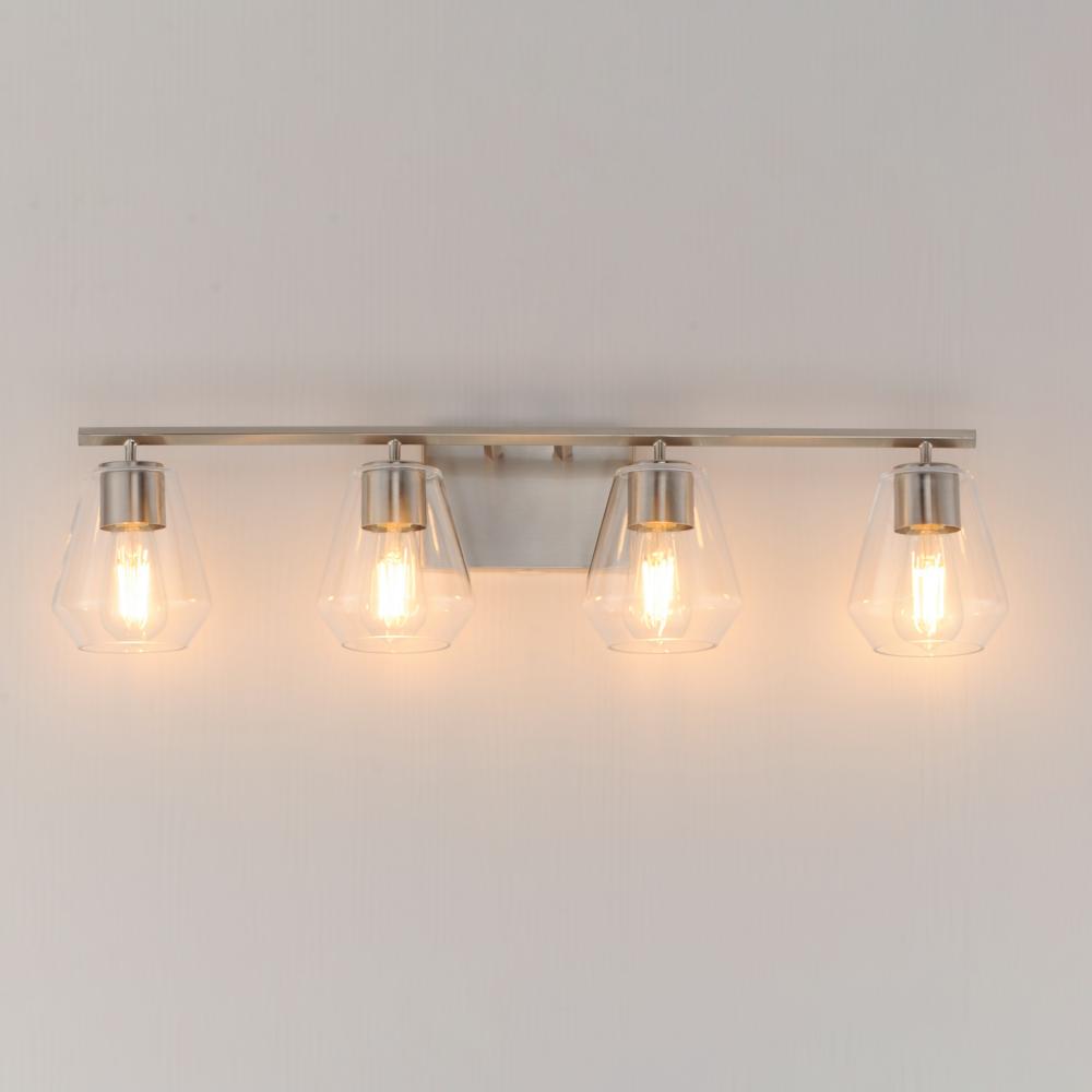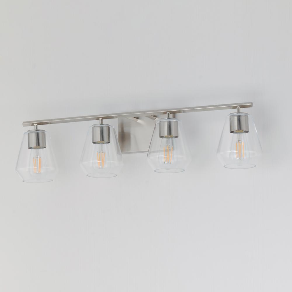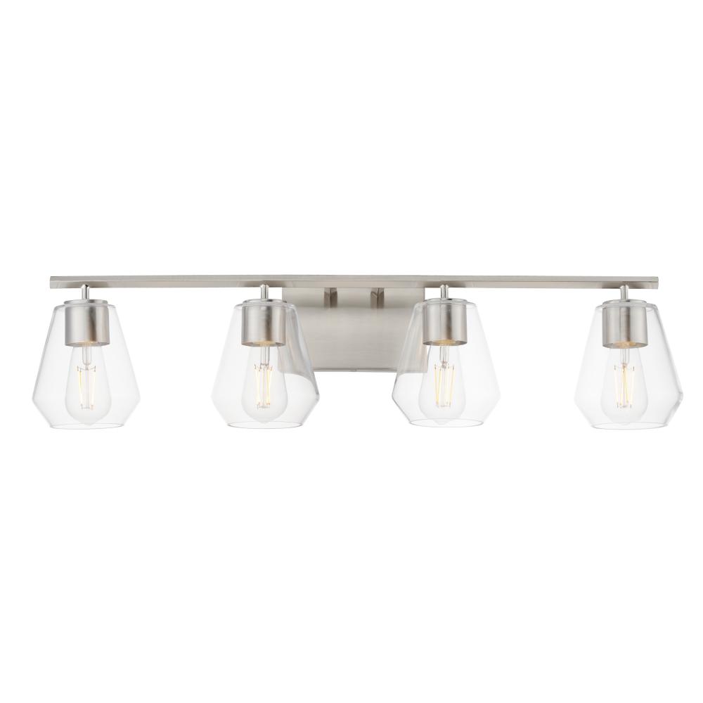 Crystalline clarity meets modern structure in the Geode collection. Inspired by the faceted symmetry of natural mineral formations, each clear glass shade is cut in an angular form that plays with light and shadow. The bold, geometric silhouette feels effo