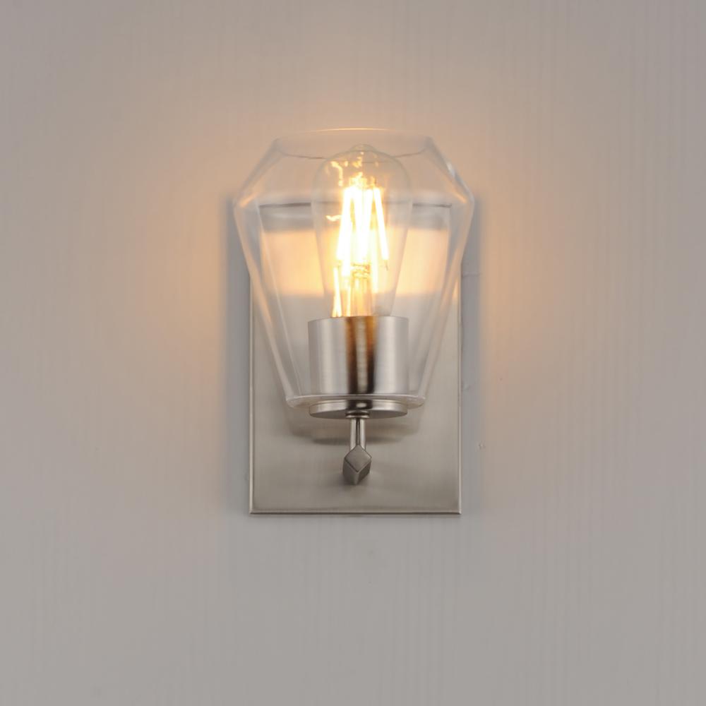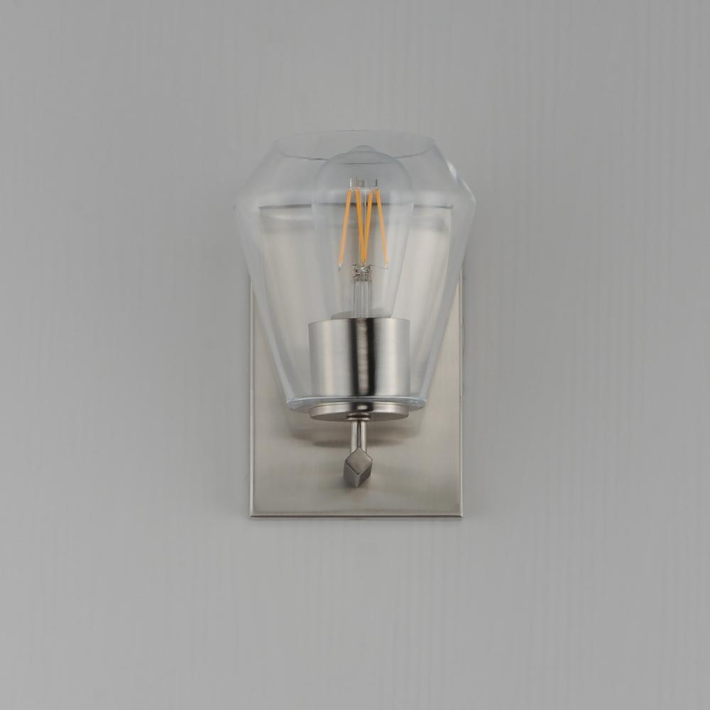 Crystalline clarity meets modern structure in the Geode collection. Inspired by the faceted symmetry of natural mineral formations, each clear glass shade is cut in an angular form that plays with light and shadow. The bold, geometric silhouette feels effo