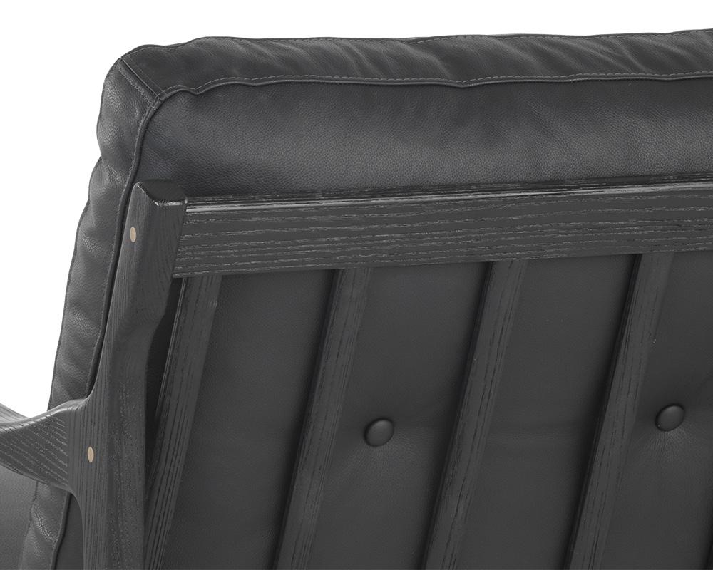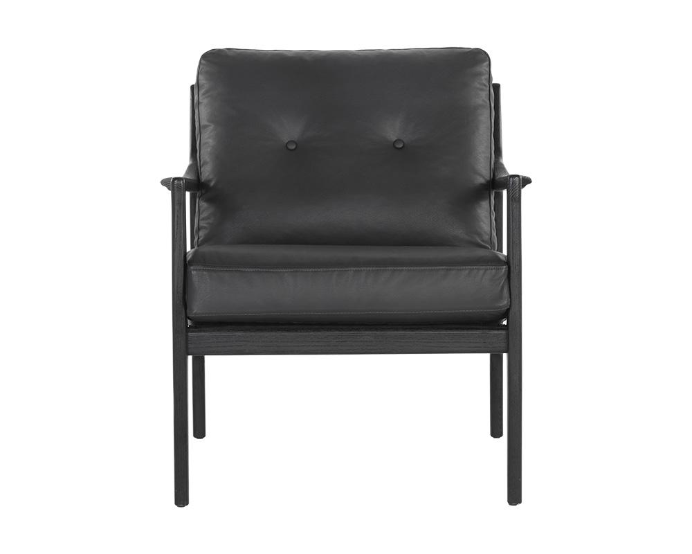 A bold and masculine lounge chair crafted in Vietnam. Features a mid-century inspired frame in black solid oak wood with a black leather seatback. Button tufting completes the look. Handle with Care: This design has been crafted with leather. Leather is a natural material; as such, colour variations, markings, wrinkles, grooves and light scratches are acceptable and appreciated characteristics. No two pieces are alike.