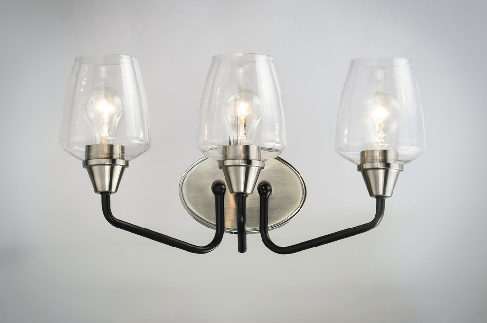 Simple yet elegant frames are finished in two tone finishes to add upscale element to this economical collection. Frames are available in either Bronze with Antique Brass accents or Black with Satin Nickel accents. Both are supplied with Clear glass shades