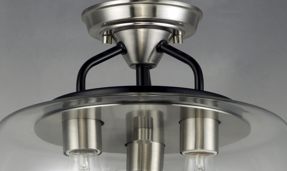 Simple yet elegant frames are finished in two tone finishes to add upscale element to this economical collection. Frames are available in either Bronze with Antique Brass accents or Black with Satin Nickel accents. Both are supplied with Clear glass shades
