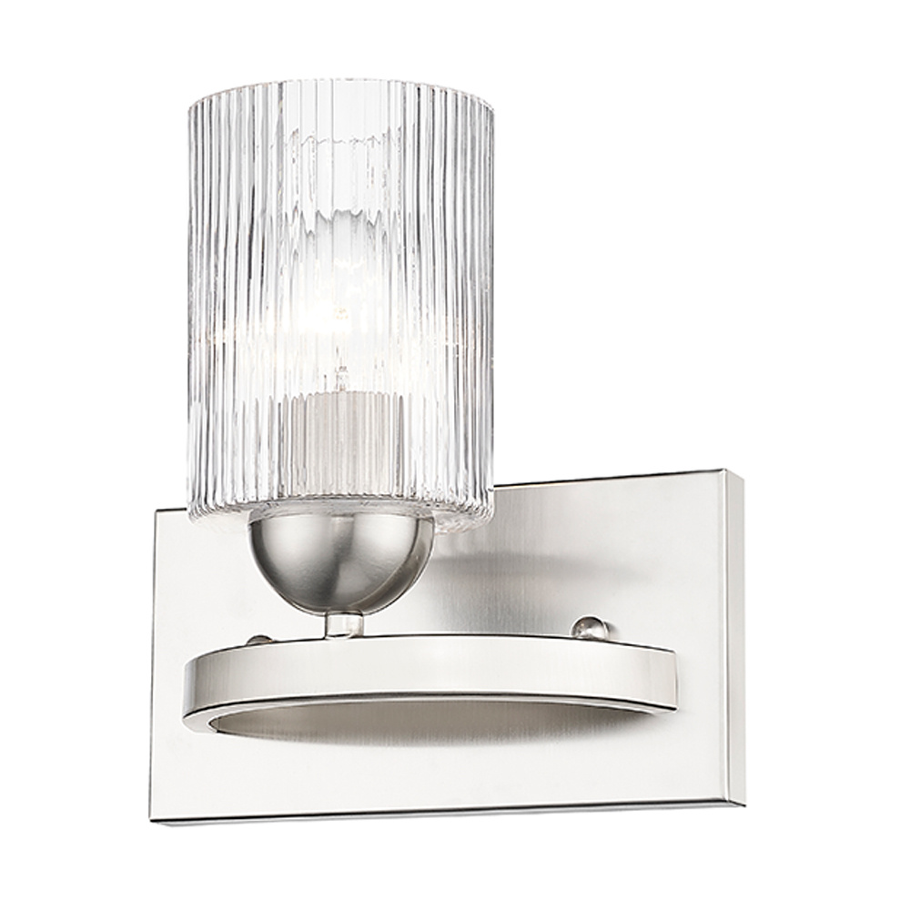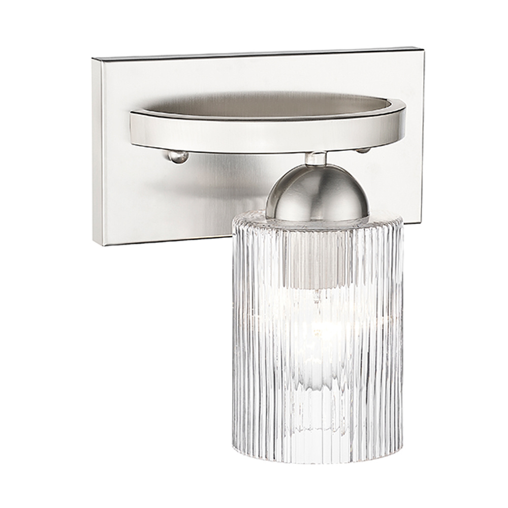 "Grace Kelly, Harlow, Gene, picture of a beauty queen"…. This shining star is our tribute to the one and only Miss Kelly: a Queen of Hollywood and a real-life Princess. Her Grace-fully curved belt holds her sheer glass sheath with a simple, smooth stem. Designed to enchant your vanity space with her classic beauty, Grace is not only lovely to admire, she can adapt to a wide range of scenes as well. She'll be stunning in brushed nickel, timeless in black, and forever fetching when combined with any of her multiple glass crowns.