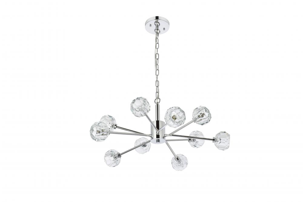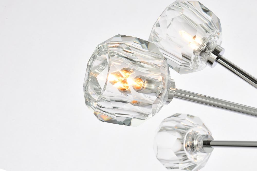 Hexagonal and pentagonal facets on the 4 inch crystal spheres tastefully diffuses the soft illumination from each arm
