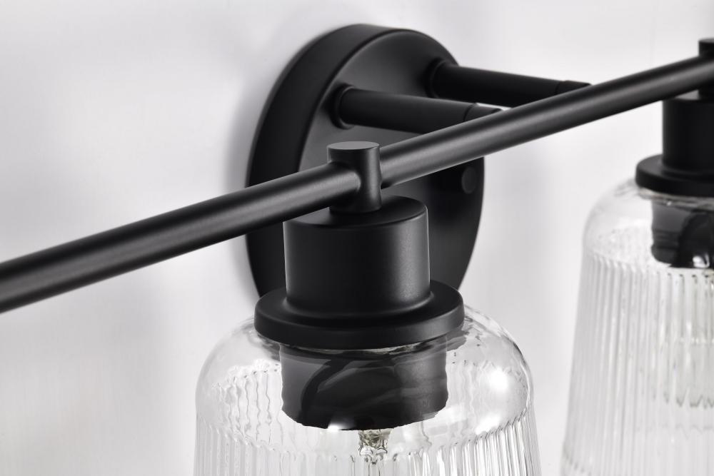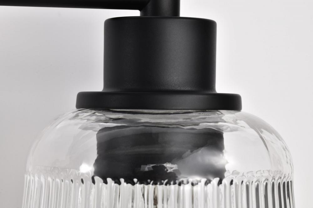 (40JMUNE) Grayson; 3 Light Vanity; Matte Black Finish; Clear Ribbed Glass
