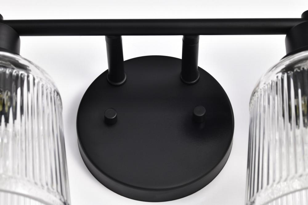 (40JMUND) Grayson; 2 Light Vanity; Matte Black Finish; Clear Ribbed Glass