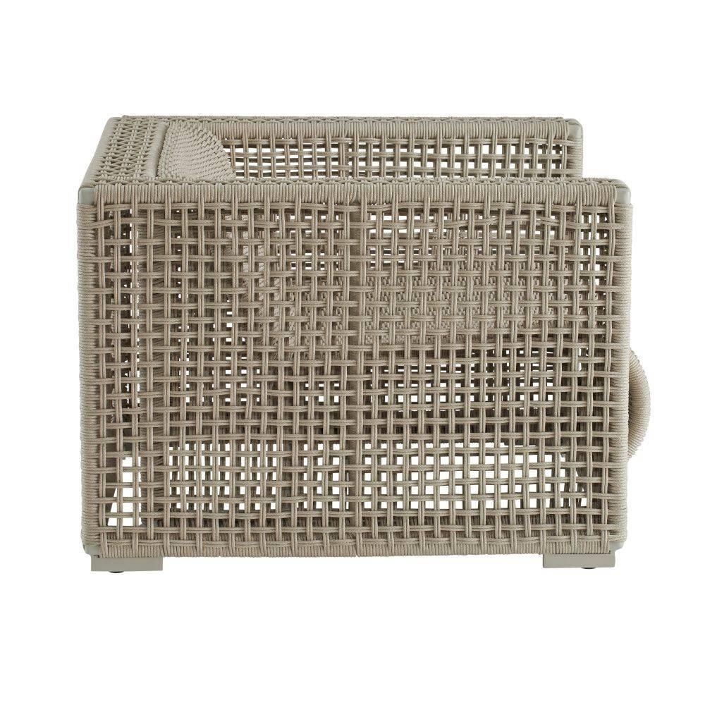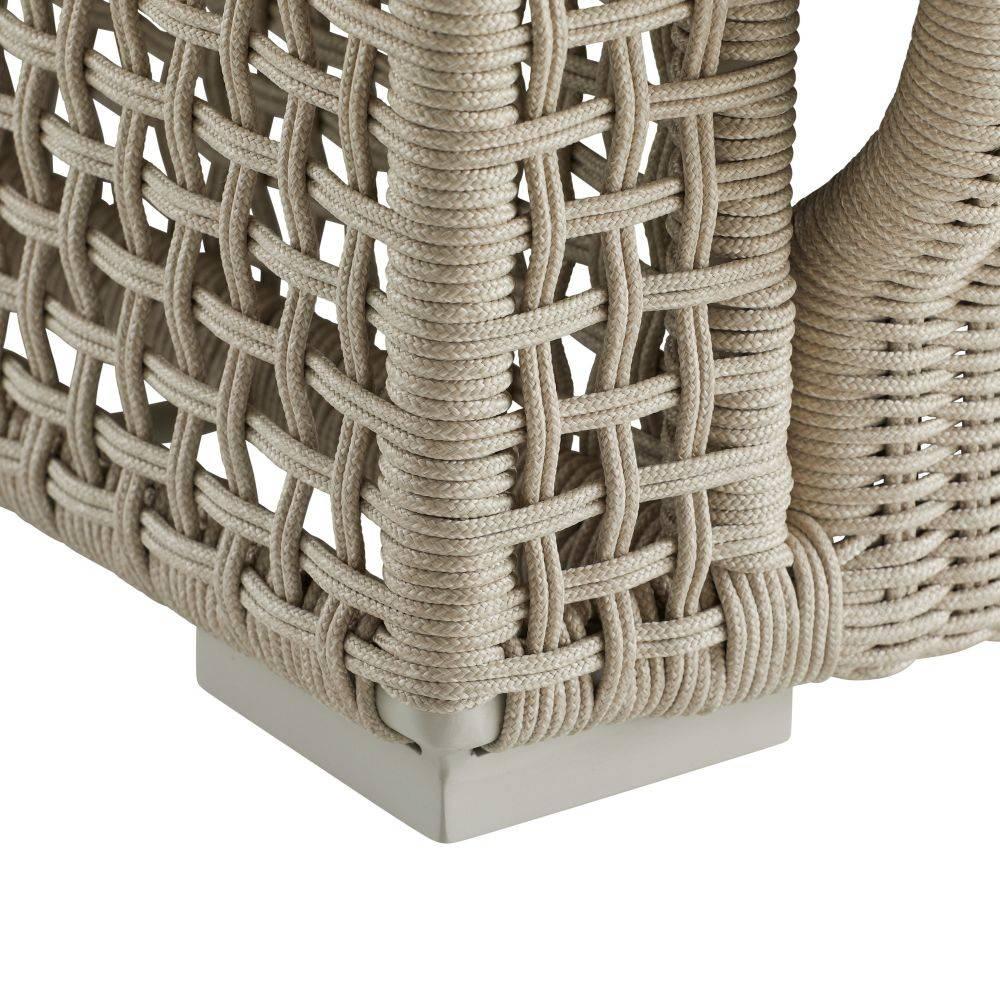 Playing with form and contrast, the Guidry features a dynamic balance of bold box form with a deep, sinuous seat. Woven from buff synthetic rope, it offers effortless comfort. Style this Japanese modern-inspired essential with a decorative back pillow for extra support. Constructed with a matching powder-coated aluminum frame and base.