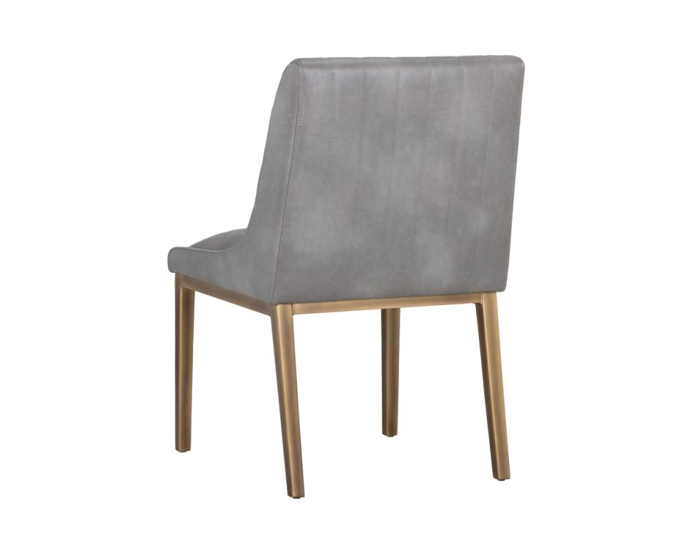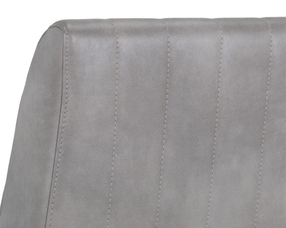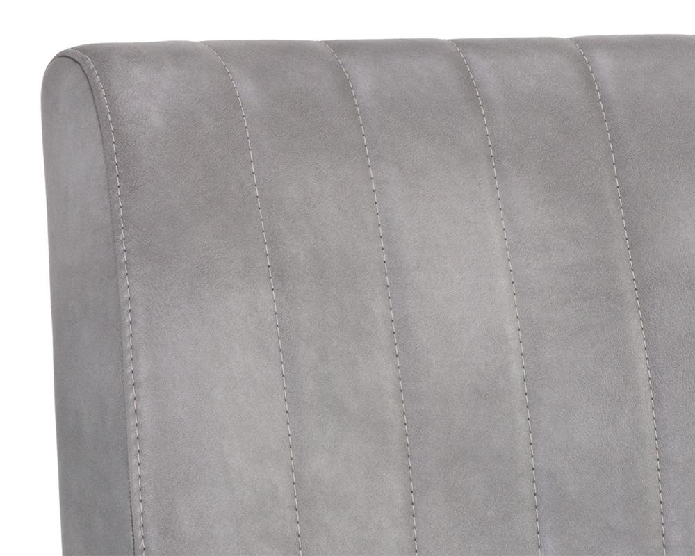 A sleek, urban designed dining chair featuring bold vertical stitching on the seat and back in bravo metal faux leather. Finished with a rustic bronze steel frame. Place in dining and office spaces for a retro look. Handle With Care: This design has been crafted with faux leather. Faux leather is manufactured to reflect the natural characteristics of leather; as such, colour variations, markings, wrinkles, grooves, and light scratches are appreciated characteristics. No two pieces will be alike.