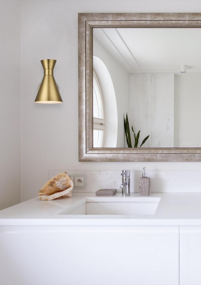 Illuminate your space with the brilliance of the Halycon Collection wall sconce. The cone dome creates a unique lighting and includes a dimmable feature that creates a calm mood. Available in a satin gold, chrome, black, and/or brass finish, this minimalistic piece will fit perfectly into your living room or bedroom. This product comes in a five or six inch length and requires one E26 socket. Light bulbs not included.