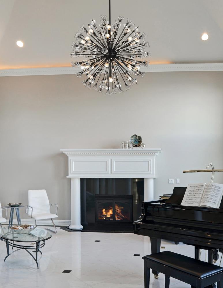 Features a striking sputnik-style shape with sparkling crystal accents for a luxurious modern touch.