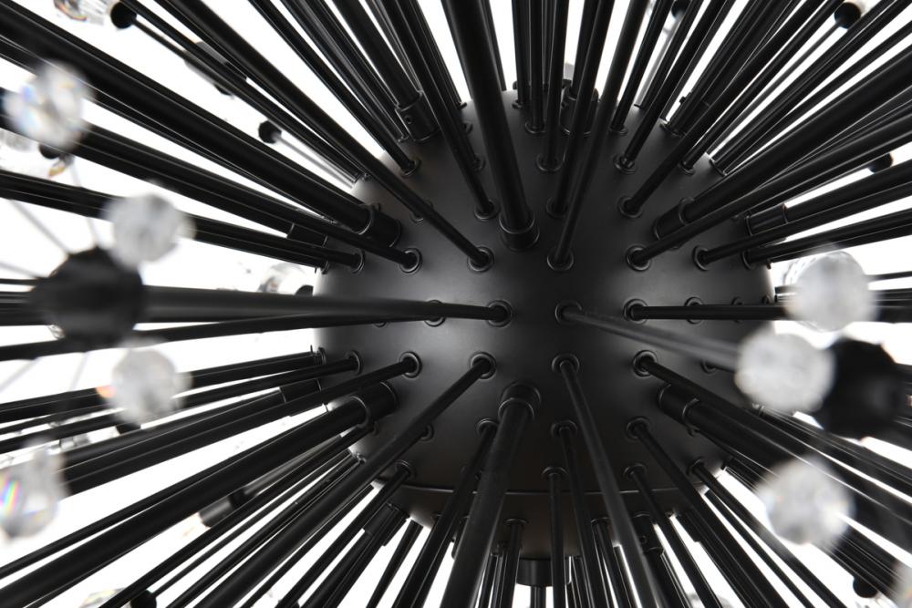 Features a striking sputnik-style shape with sparkling crystal accents for a luxurious modern touch.