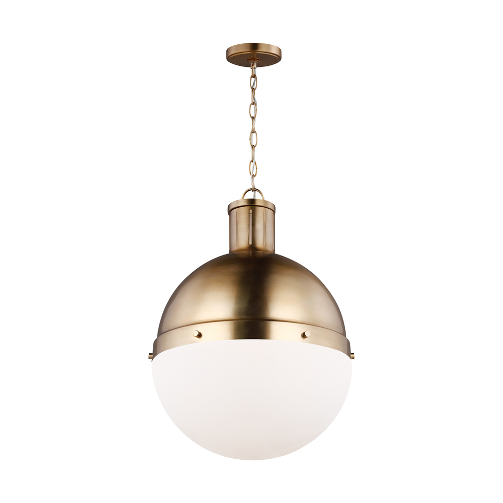 The Hanks medium modern pendant is offered in the Midnight Black/Satin Bronze, Antique Brushed Nickel, Satin Bronze, or Brushed Nickel finish. This globe style pendant is crafted with an antique finish and white glass shade, offering an approachable style with direct lighting. The multiple use of color and finishes exude mid-century modern style to help entice any updated space.