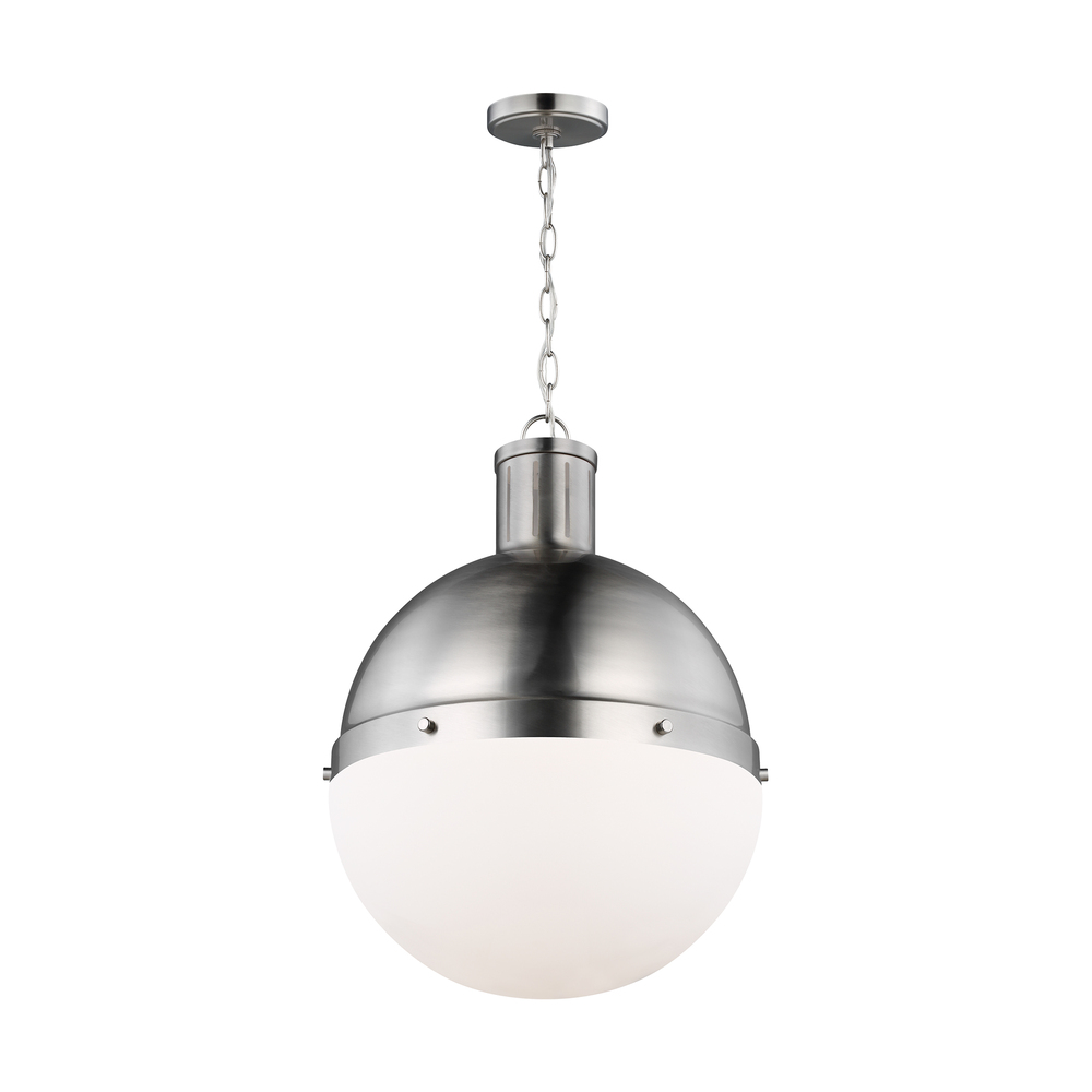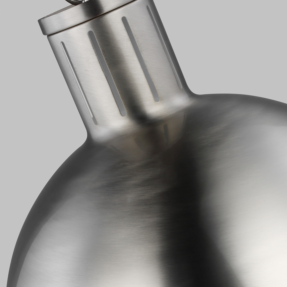 The Hanks medium modern pendant is offered in the Midnight Black/Satin Bronze, Antique Brushed Nickel, Satin Bronze, or Brushed Nickel finish. This globe style pendant is crafted with an antique finish and white glass shade, offering an approachable style with direct lighting. The multiple use of color and finishes exude mid-century modern style to help entice any updated space.