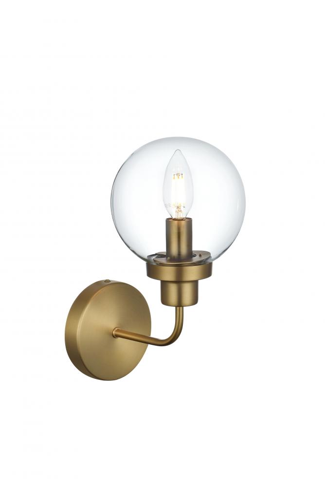 Add a touch of timeless elegance to your home with this sophisticated wall sconce. Available in five gorgeous finishes—Satin Gold, Black, Brass, Chrome, and Polished Nickel—this fixture is designed to complement a wide range of interior styles. The clear glass globe offers a modern yet classic aesthetic, gently diffusing light to create a warm and inviting atmosphere. Whether installed facing up or down, this wall sconce brings versatility and charm to any room, making it an ideal choice for bathrooms, bedrooms, hallways, or living areas. The E12 socket accommodates a variety of bulb types (bulb not included), providing the freedom to tailor the light to your preferred level of brightness. Enhance your space with the graceful lines and soft illumination of this stunning wall sconce, and enjoy a beautiful blend of style and functionality.