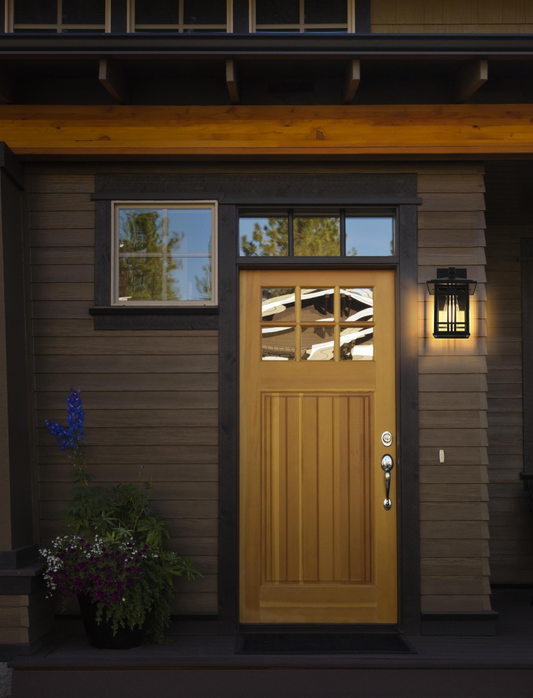 This outdoor wall light features a bold geometric metal frame with a grid-inspired design, bringing a structured, architectural presence to covered exterior spaces. The clear glass panels provide full visibility of the bulbs, maximizing illumination while maintaining a defined, modern look. Built from iron and aluminum, the black-finished frame is designed for long-term durability in damp environments. The open-bottom design ensures easy bulb changes, while the flush mount installation makes it ideal for covered patios, porches, breezeways, and entryways. Requiring one medium-base E26 bulb (not included), this fixture is also dimmable, allowing for adjustable brightness. ETL Wet Rated, this light is built to withstand humidity and moisture while delivering a modern, structured aesthetic for outdoor spaces. Built with marine-grade, corrosion-resistant aluminum, this sconce withstands coastal conditions for long-lasting durability.