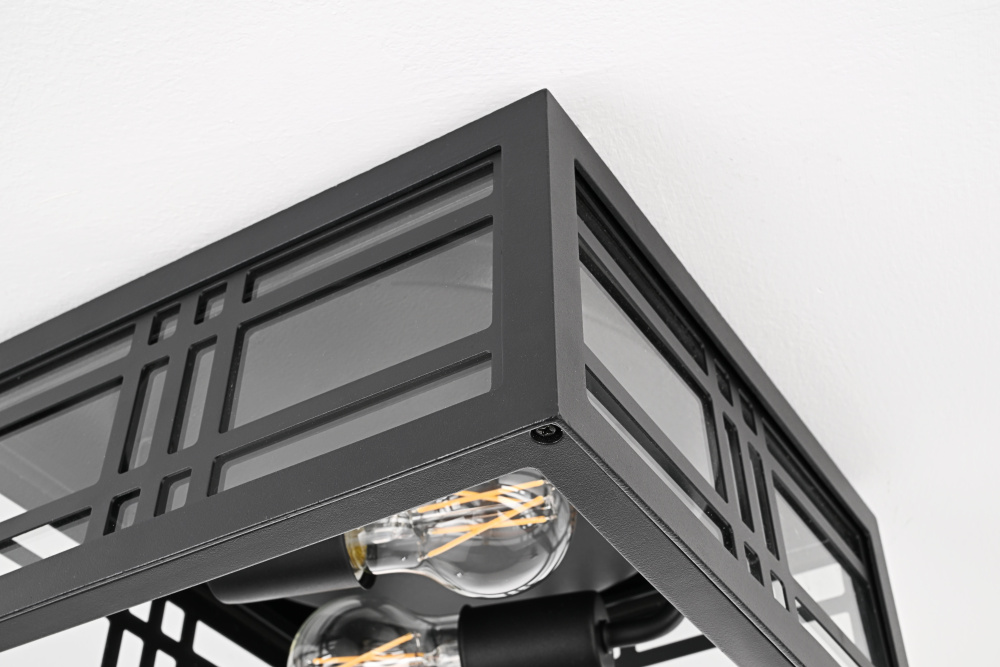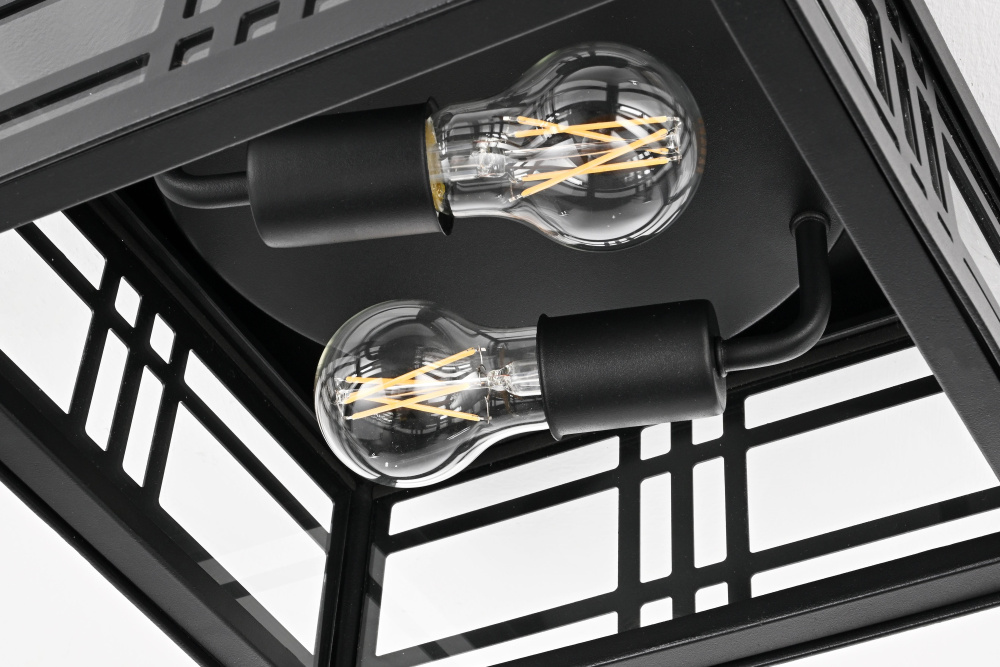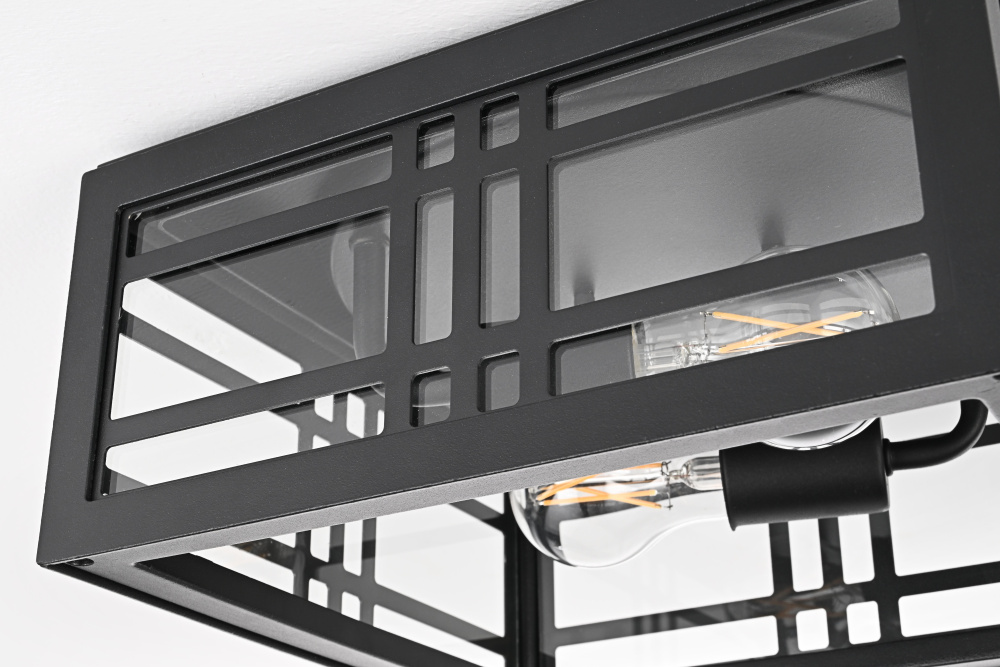 The transparent glass panels enhance visibility and allow the bulbs to shine fully while adding a structured, refined aesthetic.