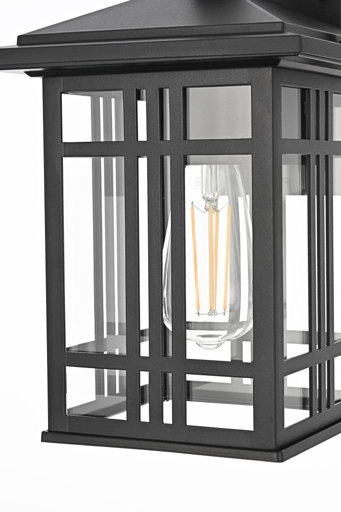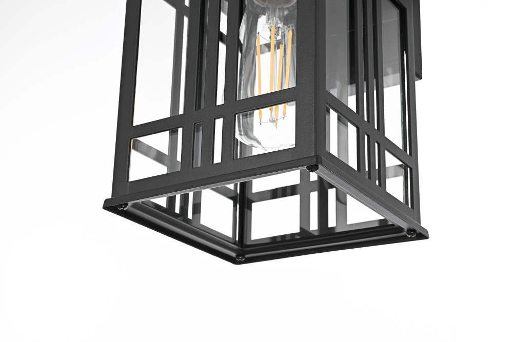 This outdoor wall light features a bold geometric metal frame with a grid-inspired design, bringing a structured, architectural presence to covered exterior spaces. The clear glass panels provide full visibility of the bulbs, maximizing illumination while maintaining a defined, modern look. Built from iron and aluminum, the black-finished frame is designed for long-term durability in damp environments. The open-bottom design ensures easy bulb changes, while the flush mount installation makes it ideal for covered patios, porches, breezeways, and entryways. Requiring one medium-base E26 bulb (not included), this fixture is also dimmable, allowing for adjustable brightness. ETL Wet Rated, this light is built to withstand humidity and moisture while delivering a modern, structured aesthetic for outdoor spaces. Built with marine-grade, corrosion-resistant aluminum, this sconce withstands coastal conditions for long-lasting durability.