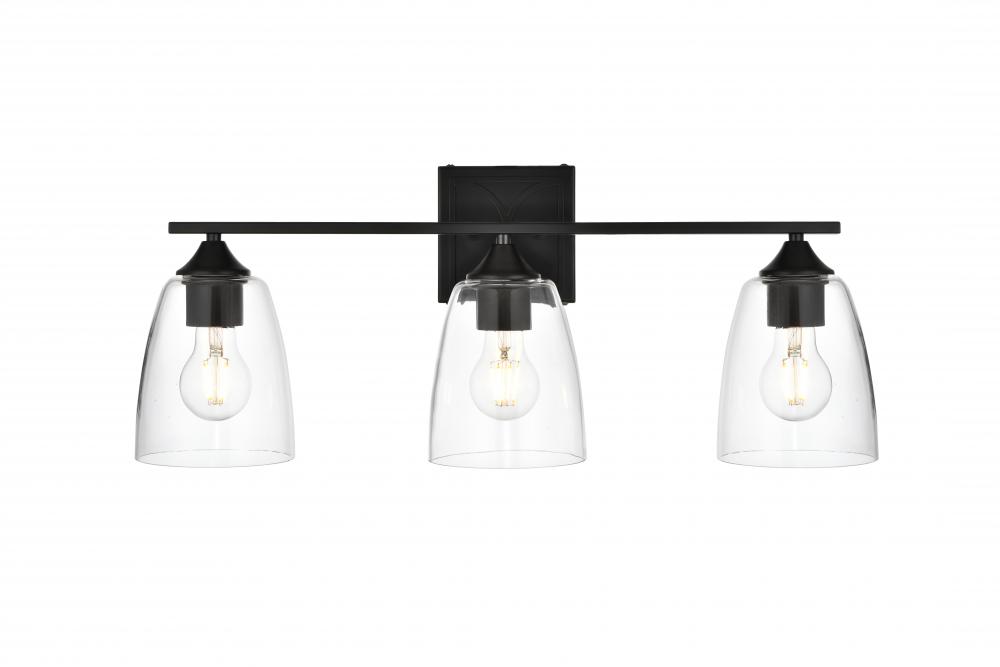 Elegant LD7309W24BLK - Harris 3 light Black and Clear Bath Sconce