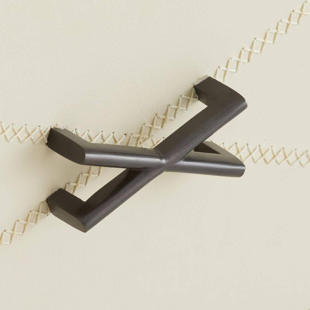 We borrowed whipstitch detailing from fine tailoring to adorn a side table of smoke oak wood. Each ivory leather-covered drawer is enhanced with cast brass hardware in English bronze finish to mirror the linear shape of the stitching. Designed with a generous depth for storage, this sophisticated piece is veneered all the way around, allowing it to float within the room. Soft-close drawers and English Bronze-plated stainless-steel base. Leather will vary.