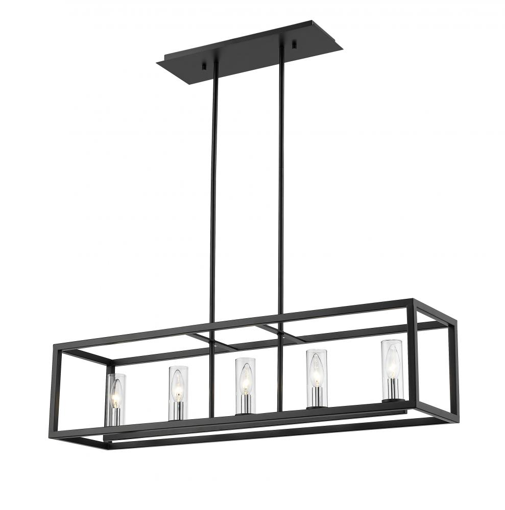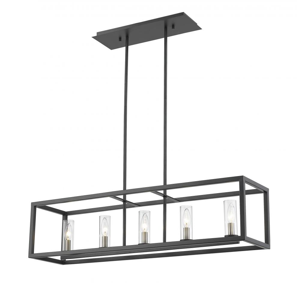 Offering his bold, boxy perspective, the Henry is all about geometry. His smooth cage design offers a solid base to support each of his delicate glass candleabra sheaths. He's striking in brushed nickel, and universally appealing when outfitted in black with his multiple sleeve finish options. Groomed to shine his brilliant ilght upon islands, tabletops or bartops, Henry will confidently elevate any gallery space.