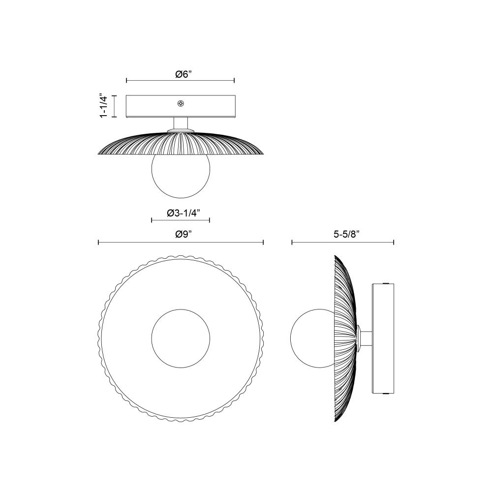 (7072Q3M) Hera 9-in Matte Black/Clear Ribbed Glass LED Wall/Vanity