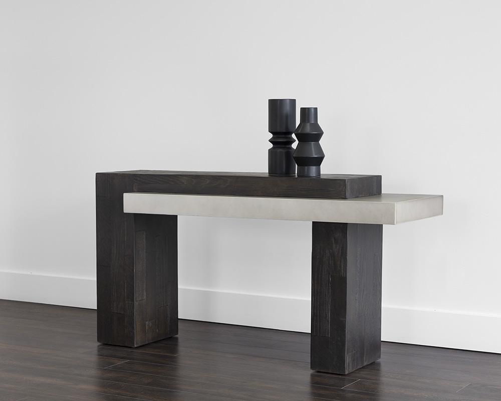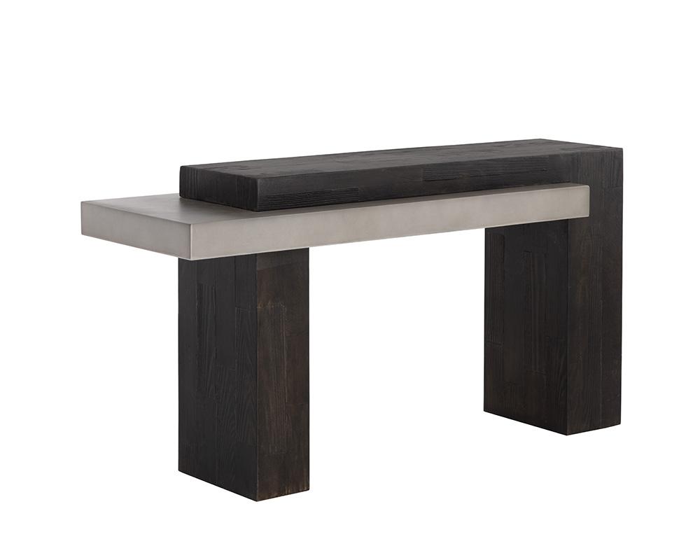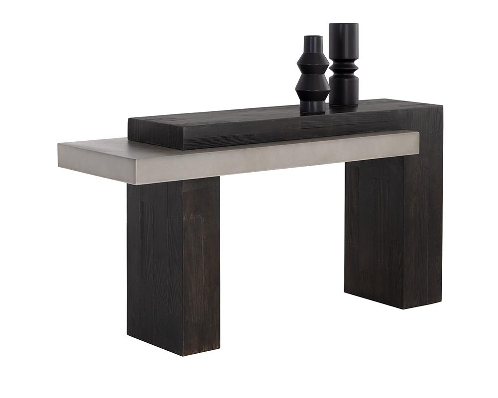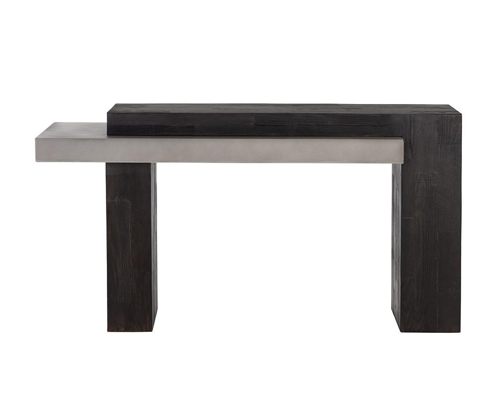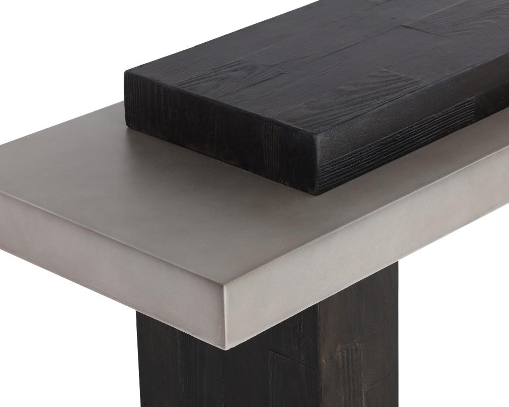 With an eye-catching design, this striking console table exudes an impressive contemporary style. Features a base crafted from dark brown concrete with a fascinating timber effect. Completed with an accenting grey concrete slab. Coordinating coffee table also available. Suitable for indoor and covered outdoor spaces.