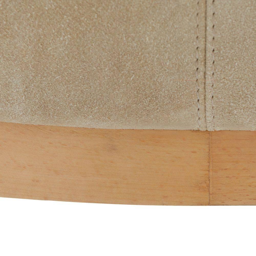 A comfortable dining or living room option, the Hershel delivers a modern mix of materials. The taupe suede seat delivers a slim profile with a soft curved back and demi arms that cradle the body. Blonde beech wood legs are lightly textured and finished with blackened bronze iron ferrules. Suede will vary.