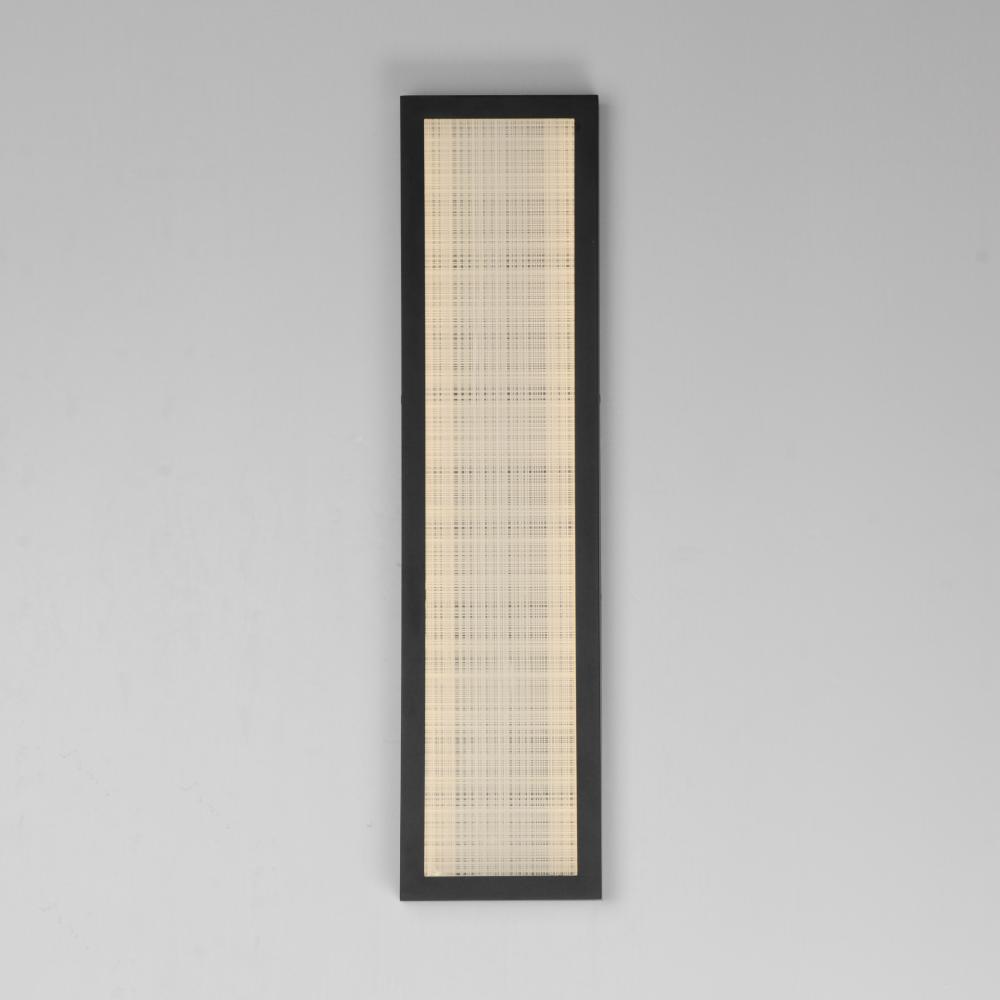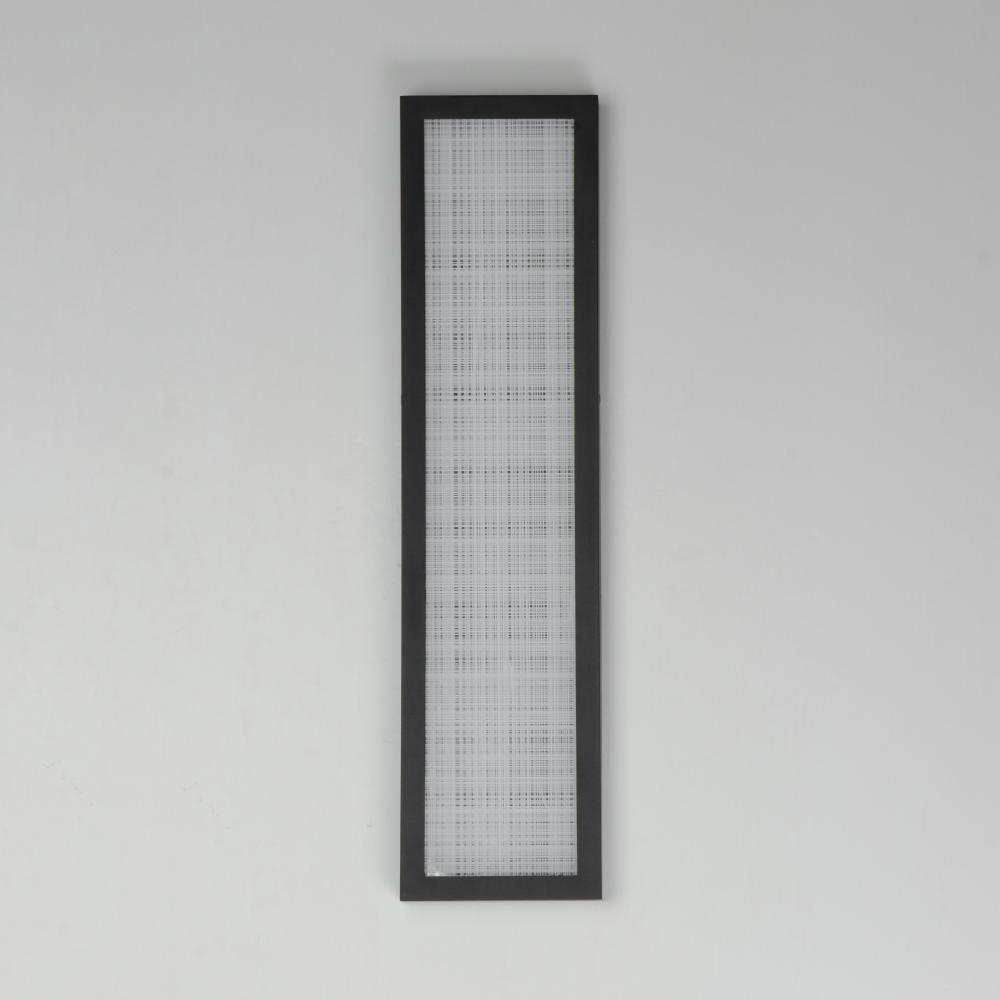 An internally illuminated shadow box is encased in glass with a tartan plaid pattern engraved to mimic linen. The back plate features a polished stainless steel plate adding an almost infinite dimension to the pattern. Constructed of aluminum in Matte Blac
