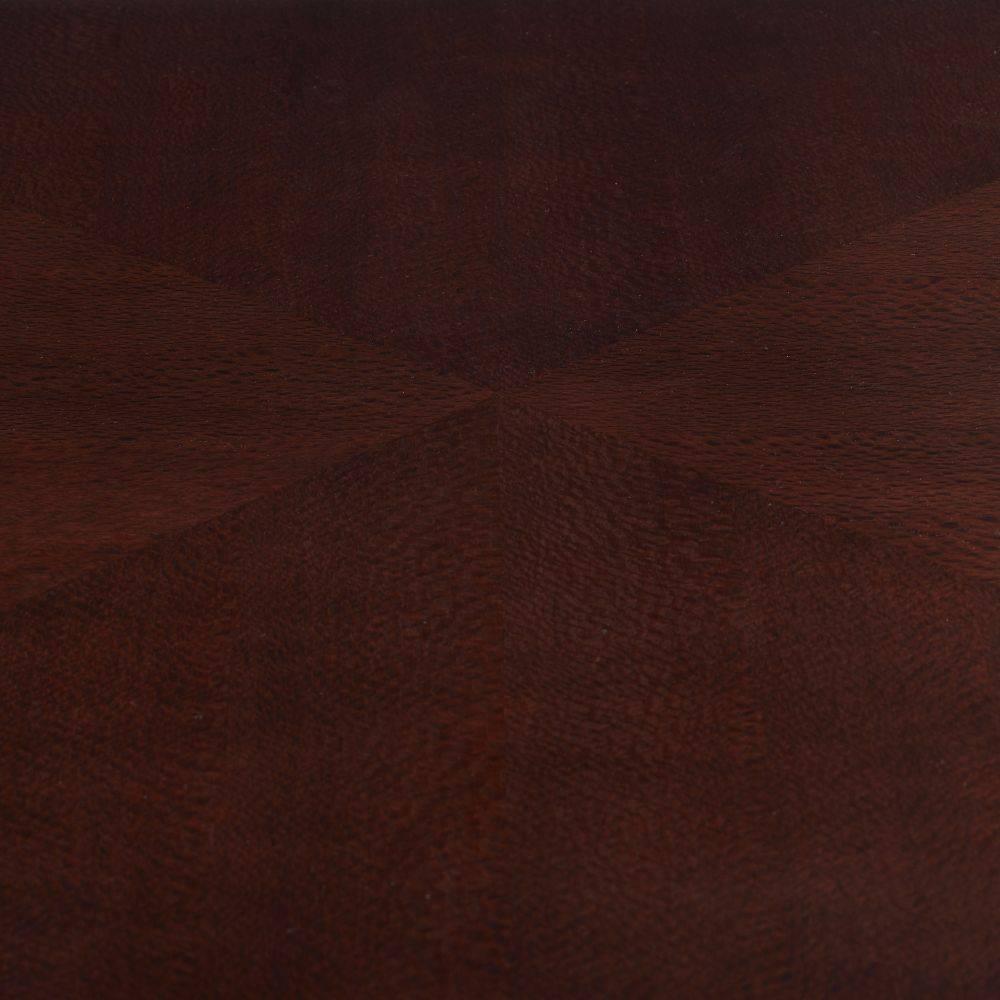 A new shape for a classic essential, this Art Deco-influenced design juxtaposes traditional materials with a contemporary form. Dark sienna lacewood veneer is finished with a high-gloss lacquer on the diamond-patterned top and the X-shaped base. Overscaled in size, it is a grounding accent piece for an entryway or dining room. Finish will vary.