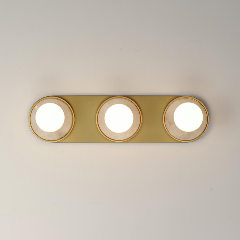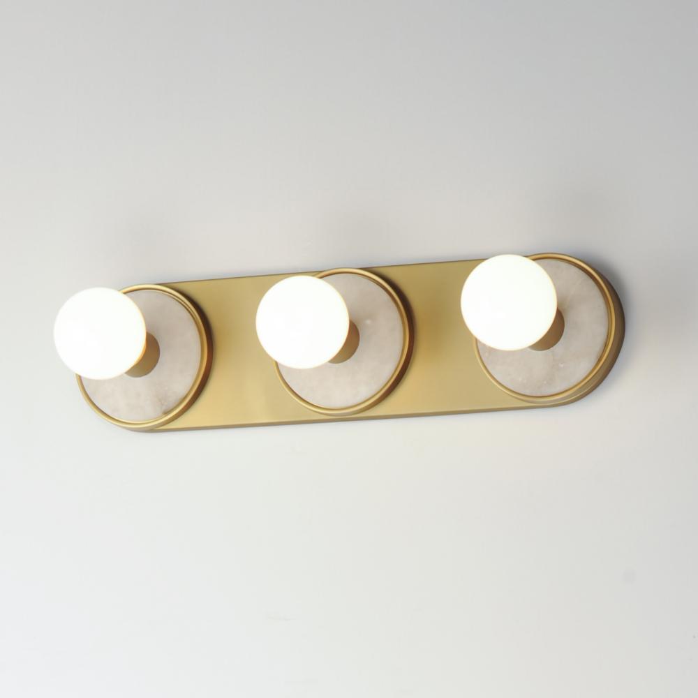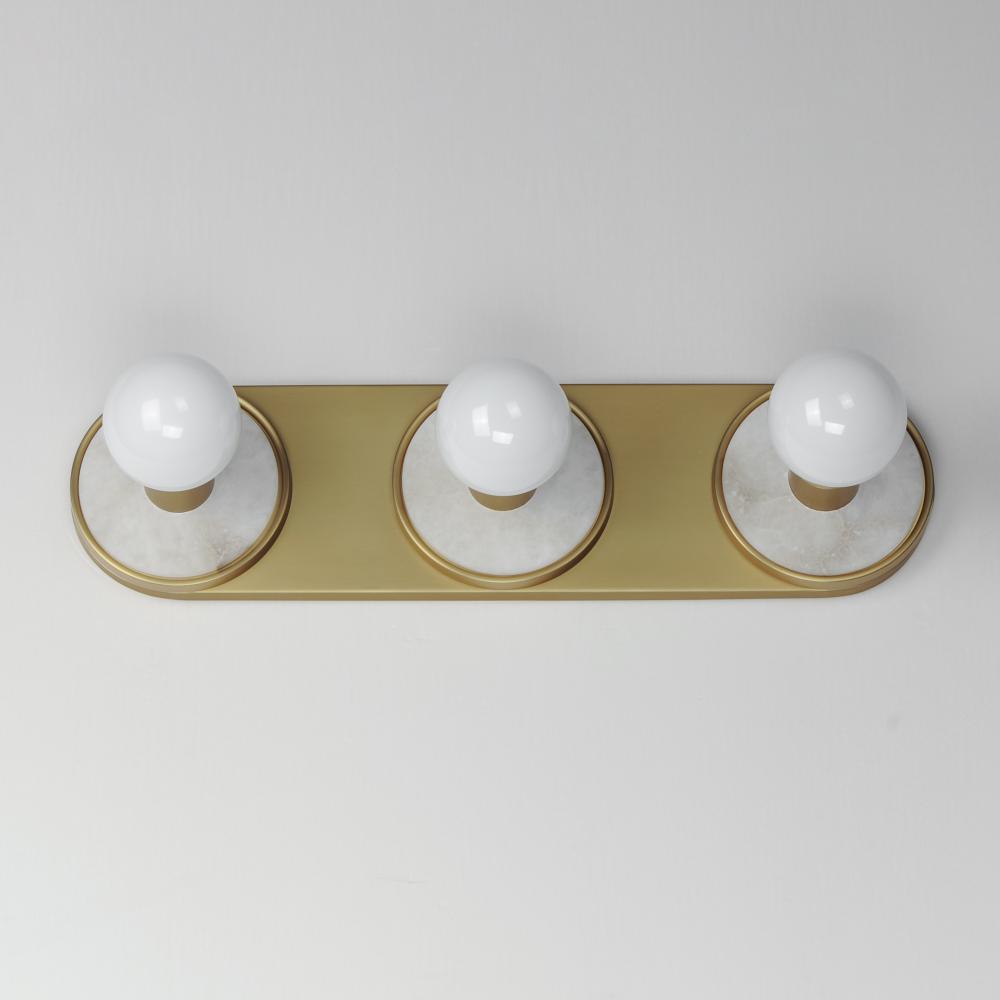 Get ready for your closeup. This collection of streamlined vanity lights are available in glamorous two tone finishes. Select from Polished Chrome with reversible Black and White plates or Natural Aged Brass with Matte Black or Spanish Alabaster plates. Gl