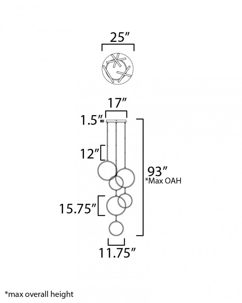Rings of various sizes finished in Black are supported from a column of soft Gold. This European classic is a soft contemporary design which works in today's home decor.
