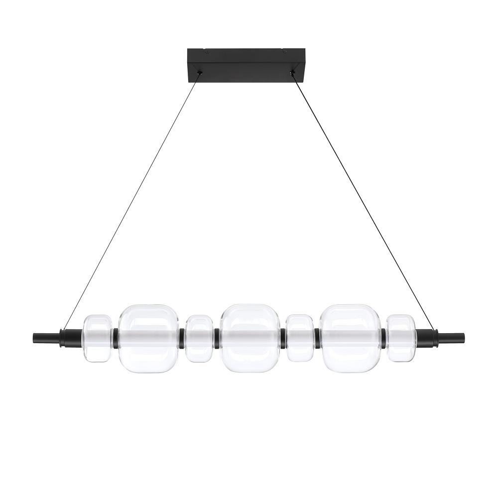 TRAVARE horizontal LED Bar Pendant in a Black finish with clear Borosilicate Glass shades