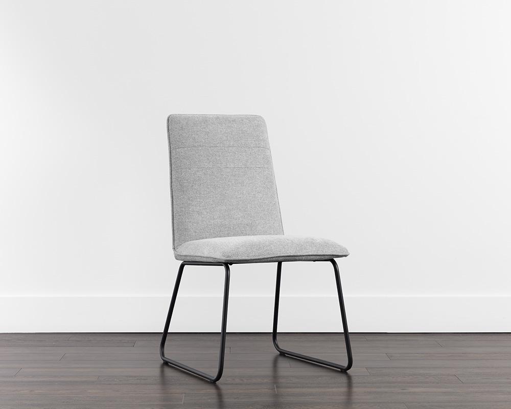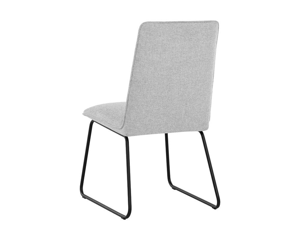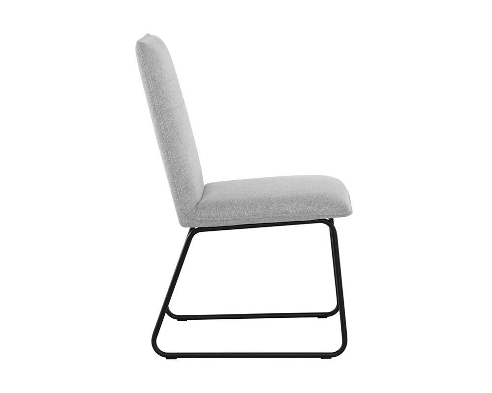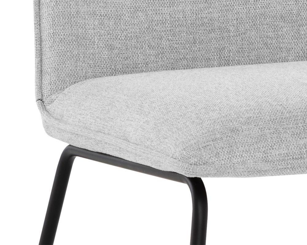 With a stylish, minimalist design, this mid-century dining chair is a perfect addition to any dining room space. Stocked in belfast heather grey and dawn grey fabrics, and completed with powder coated metal legs in matte black.