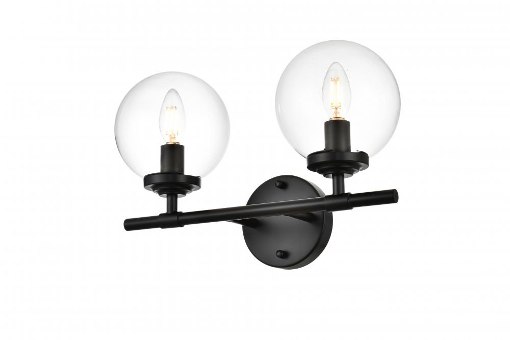 Elegant LD7302W15BLK - Ingrid 2 light Black and Clear Bath Sconce