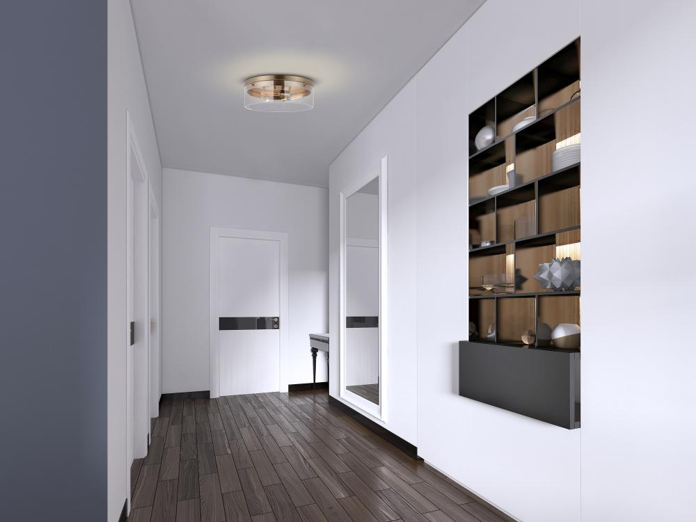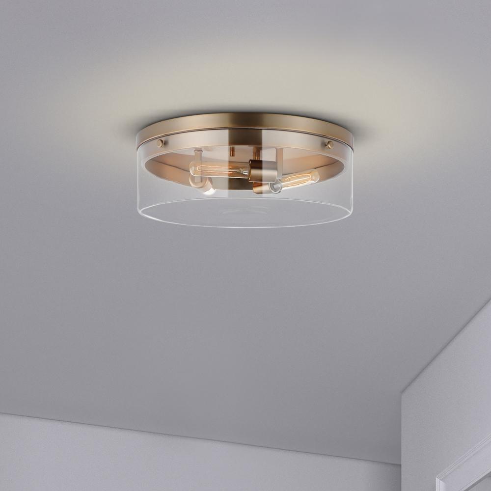 The blend of styles (modern, industrial and chic) is incorporated beautifully into the design of the Intersection large flush mount. The clear glass shade showcases vintage filament bulbs for a touch of nostalgia. The luster of the rich, burnished brass wi