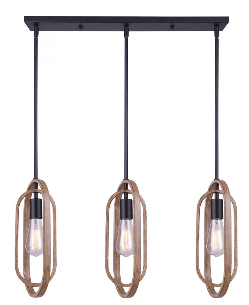 DILAN, IPL1078A03BKB -G-, MBK + Brushed Brown Color, 3 Lt Rod Pendant, 60W Type A, 30.75inch W x 22.5 - 64.5inch H