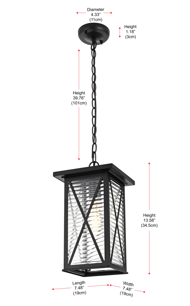 The 39-inch chain allows for a minimum hanging height of 18 inches and a maximum height of 56 inches for flexible placement.