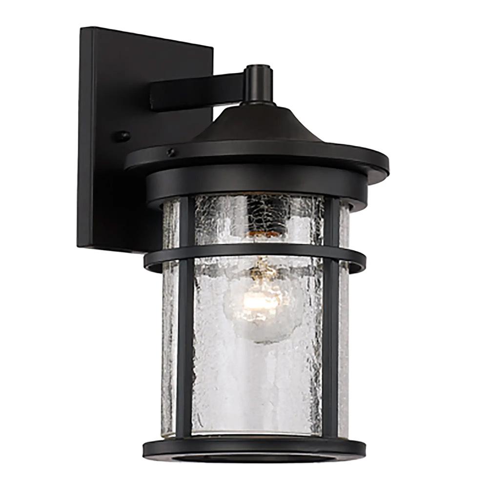 A bold base and delicate, crackled glass have harmonized to create the distinctive Janis lantern. Whether you're driving up in your Mercedes Benz or strolling to your doorstep after a moonlit walk, the Janis is happy to welcome you home. Through her simple black framework, the textured details of her glass shade will shine through and add a glimmer of personality to your outdoor stage.
