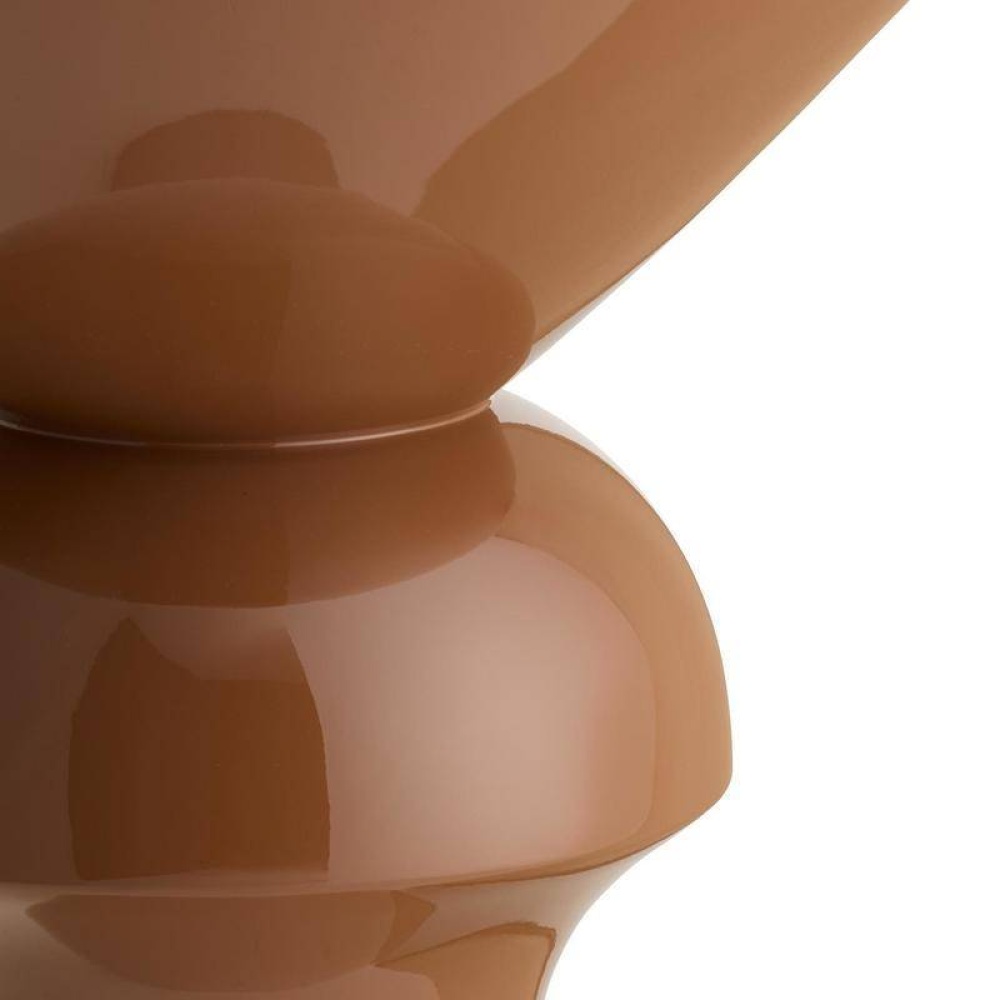 The cinched silhouette of this accent piece is enhanced with our cider lacquer finish. The feminine shape can work as a tall drinks table or add balance on either end of a seating arrangement.