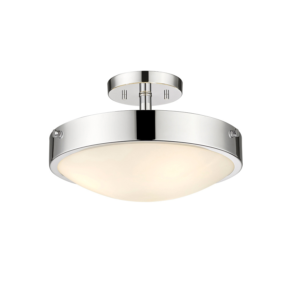 For a fresh eye on a tried & true ceiling standby, allow Jasper his moment in the spotlight. With his wide banding and simple metal detailing, he creates a contemporary mood. His circular frame is available in two versatile sizes, in thick strokes of color: bold black, clean brushed nickel, soft gold, and classic, polished chrome. With his round opal glass shade casting an understated glow, Jasper will add a pop of modern character and class to any exhibition.