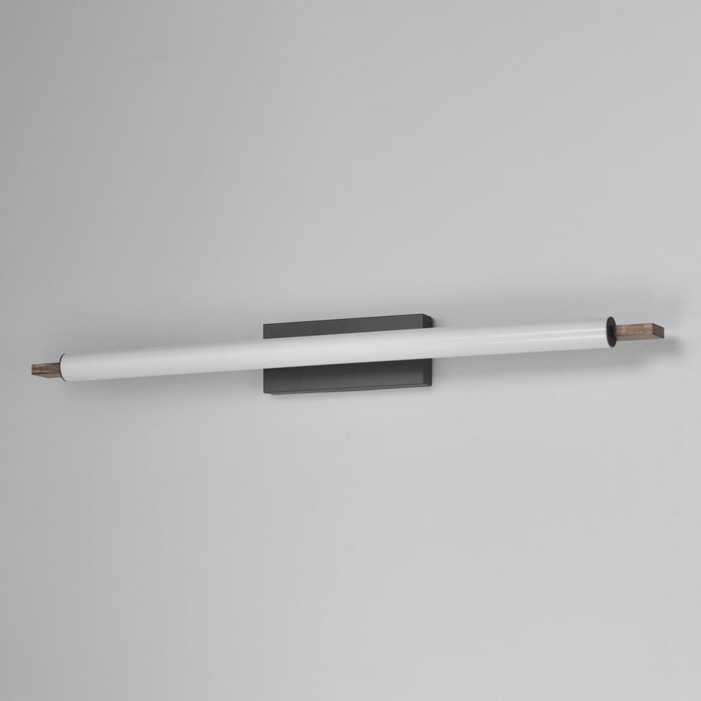 Horizontal Spans of natural wood frame an evenly diffused LED omnidirectional light source. Choose from genuine Walnut with Black or Natural Aged Brass accents or solid oak in a hand-applied Driftwood finish. Whether surface mounted or suspended as a penda
