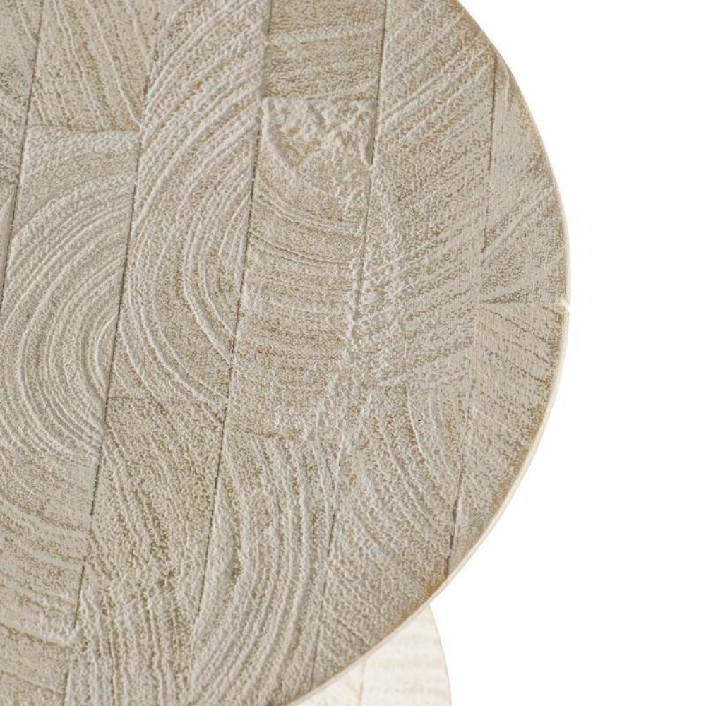 Our whitewash mango wood table lends a curvaceous charm to any sofa or seating area. Reminiscent of natural wood sculptures found on the coast, this feminine style is accented with carved-out lines along the side that enhance its sculptural shape. Finish will vary.