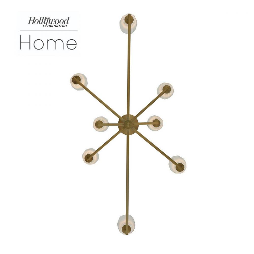 June features a linear modern design with skinny faceted glass featuring a frosted interior and a trendy Winter Brass finish. G9 LED lamps included.