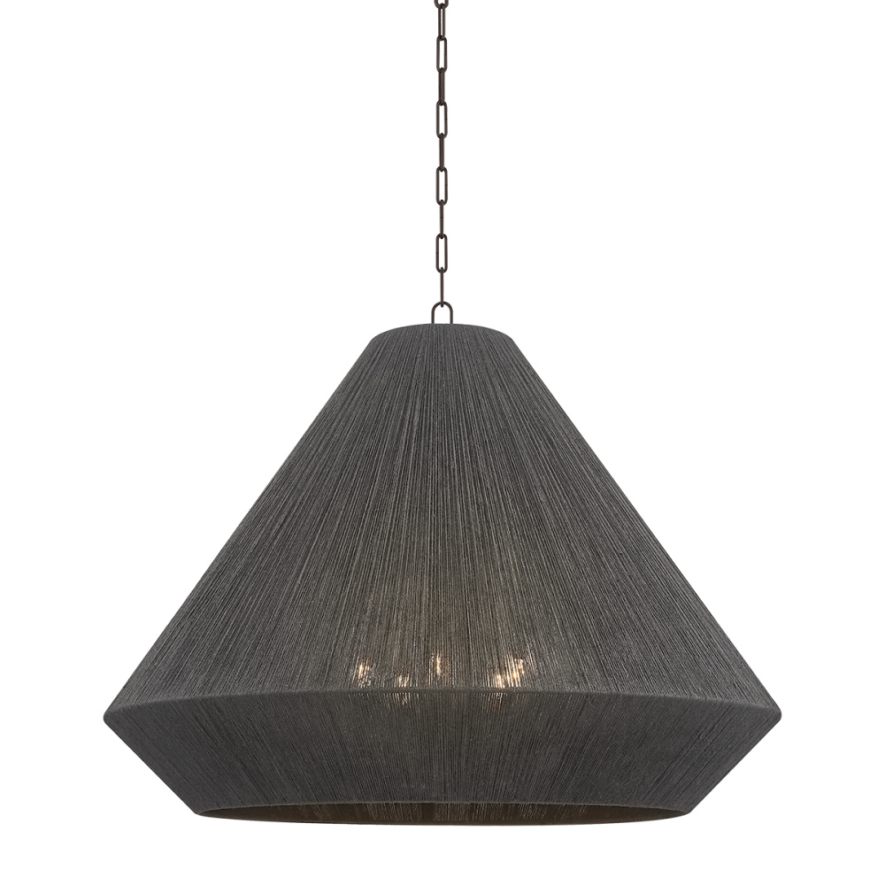 Commanding attention, the Keats pendant features a generous scale and tailored use of natural materials. A central candle cluster fills the conical shade with a warm glow, accentuating the beauty of the woven jute. Keats is available in two sizes and two material combinations: Patina Brass with natural bleached jute for a light, organic feel, or Bronze with black jute for a bolder contrast.