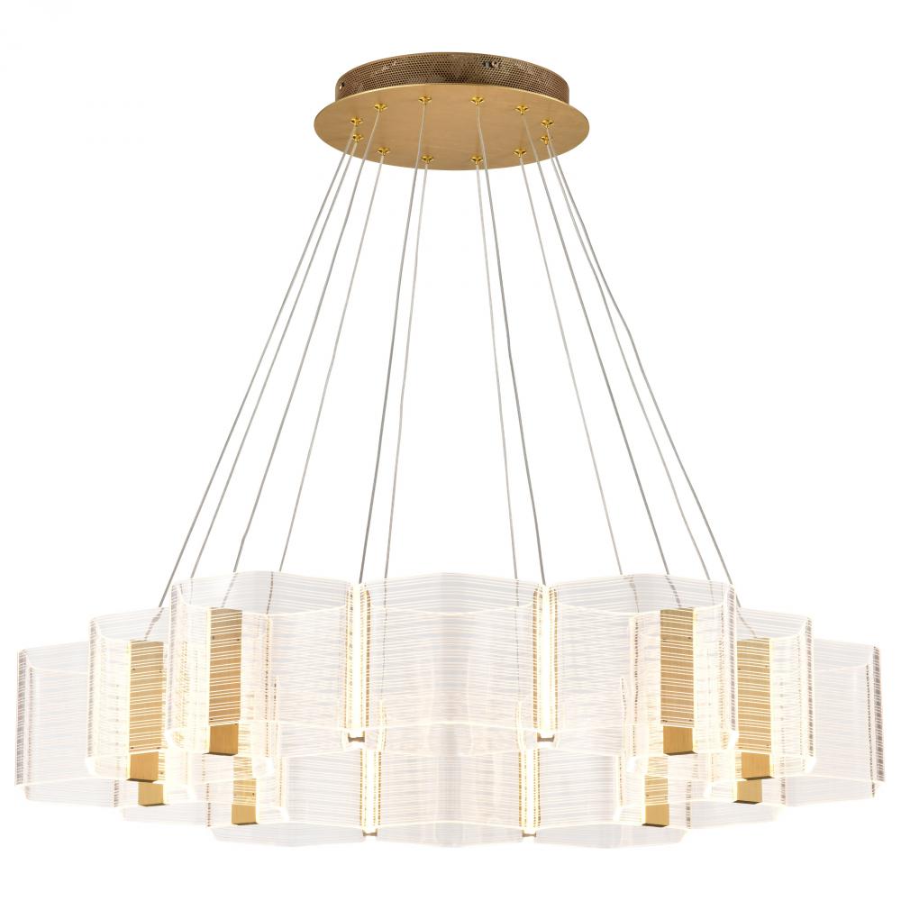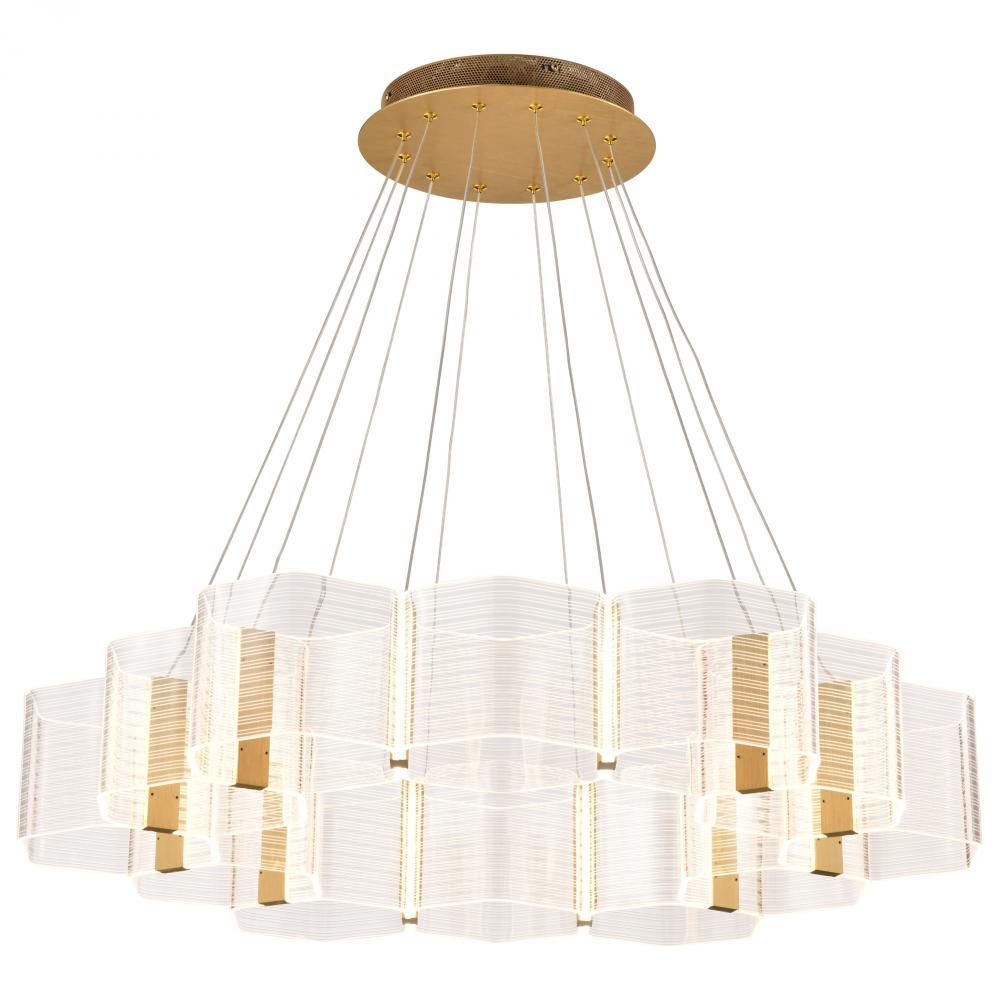 Unveil the art of Modern design with the Kenzo 62-2404 LED chandelier, where bold geometric styling meets sculptural elegance. The parallel lines create a dynamic visual effect, blending symmetry with artistry for a look that captivates. Edge-lit acrylic s