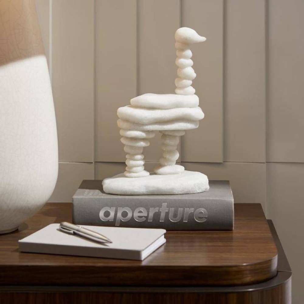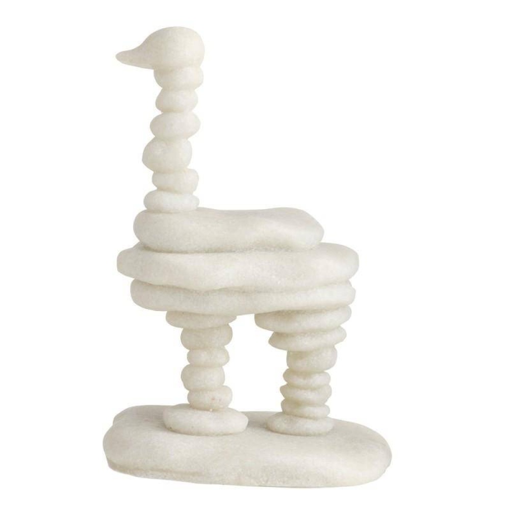 The tradition of stone stacking is updated in our form of cast ivory ricestone composite. Anchored to a base for secure display, this modernist cairn resembles an ostrich. Finish will vary.