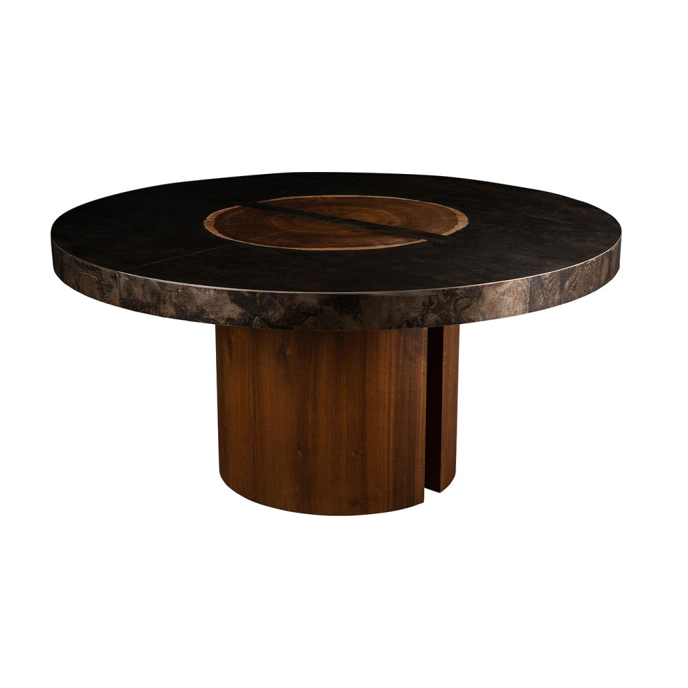 Kobe Round Dining Table, Toasted Yukas with Abstract Metal Finish