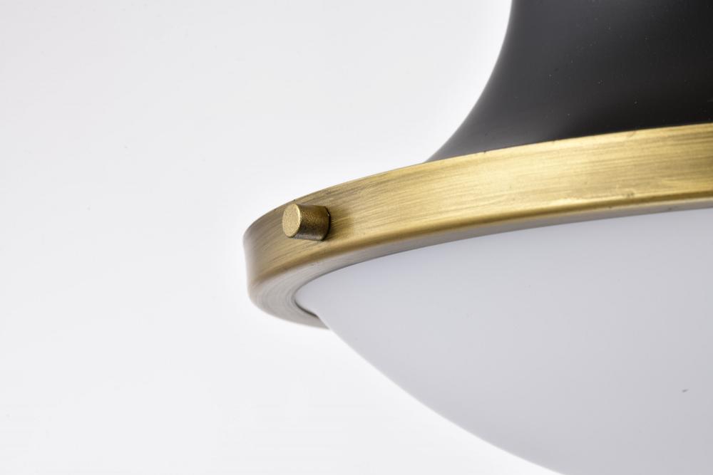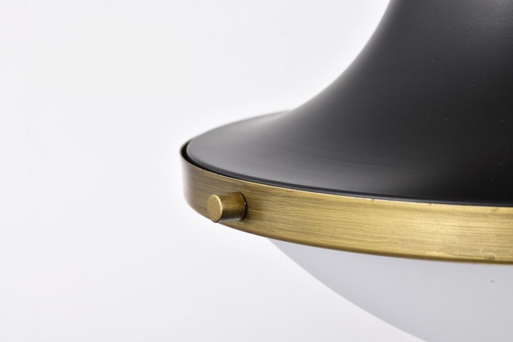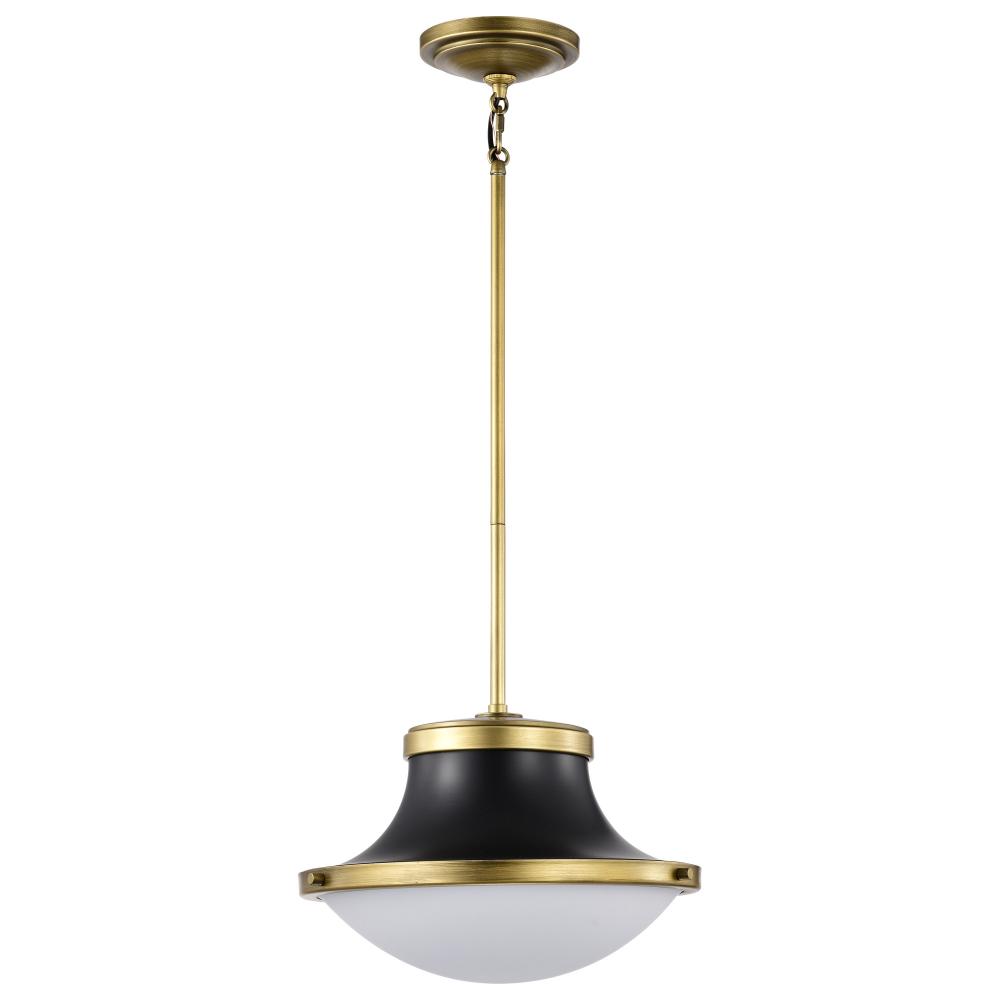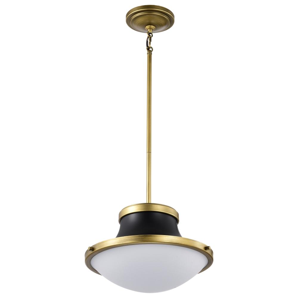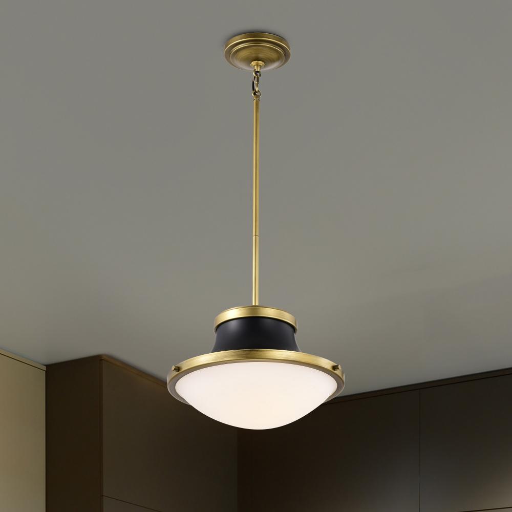 The Lafayette 60-7907 medium pendant is a beautiful transitional-style luminaire that features a matte black finish with a white opal glass shade. The design combines elements of both traditional and contemporary styles with clean lines and a simple shape,