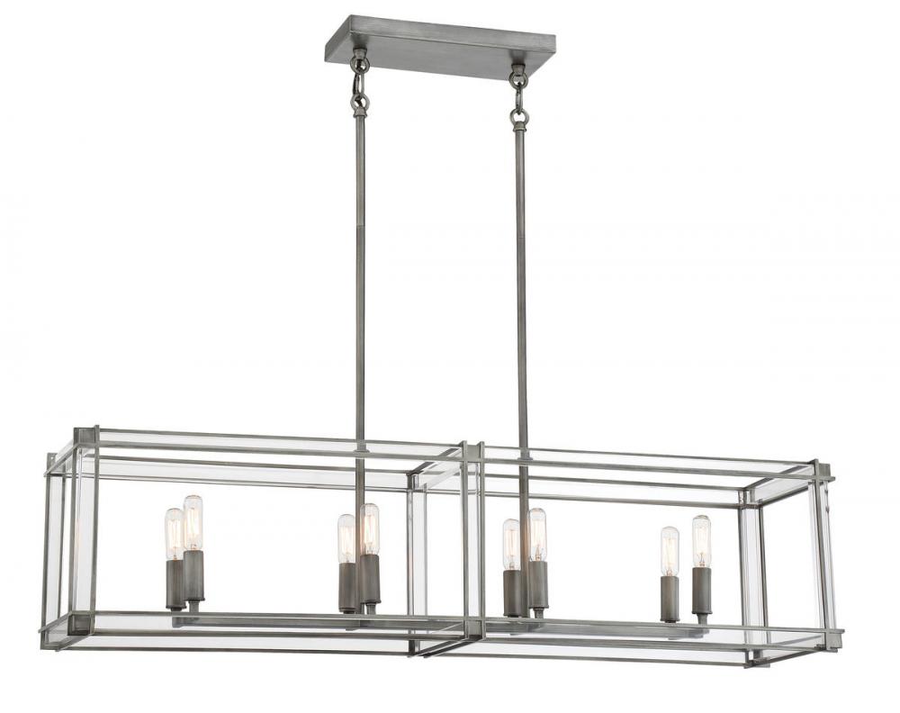 8 Light Island in Antique Nickel Finish with Clear Acrylic