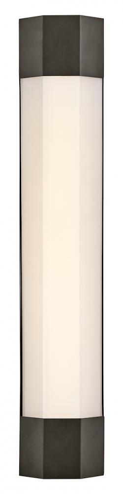 View the many sides of Facet. Interesting angles combine with bold metal features to create an edgy and contemporary profile that is unpretentious yet unforgettable. Hexagonaletched opal glass is showcased by Heritage Brass or Black Oxide finishes.