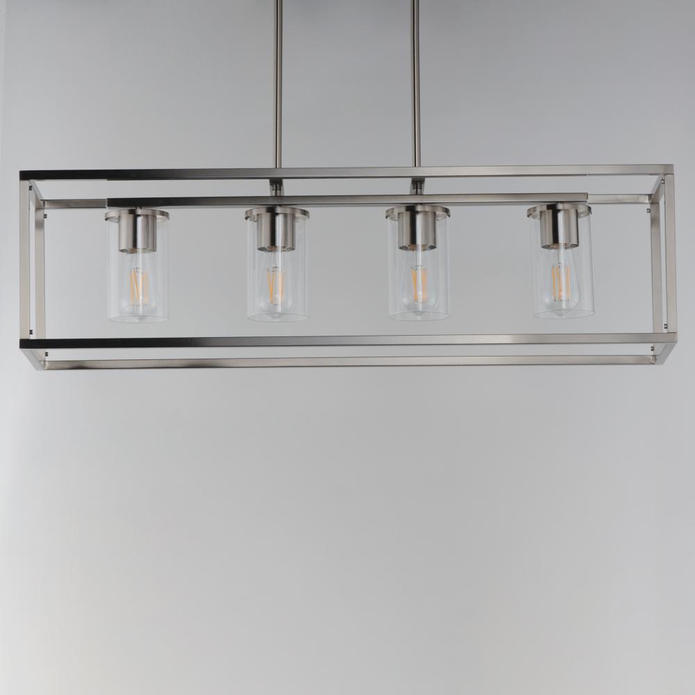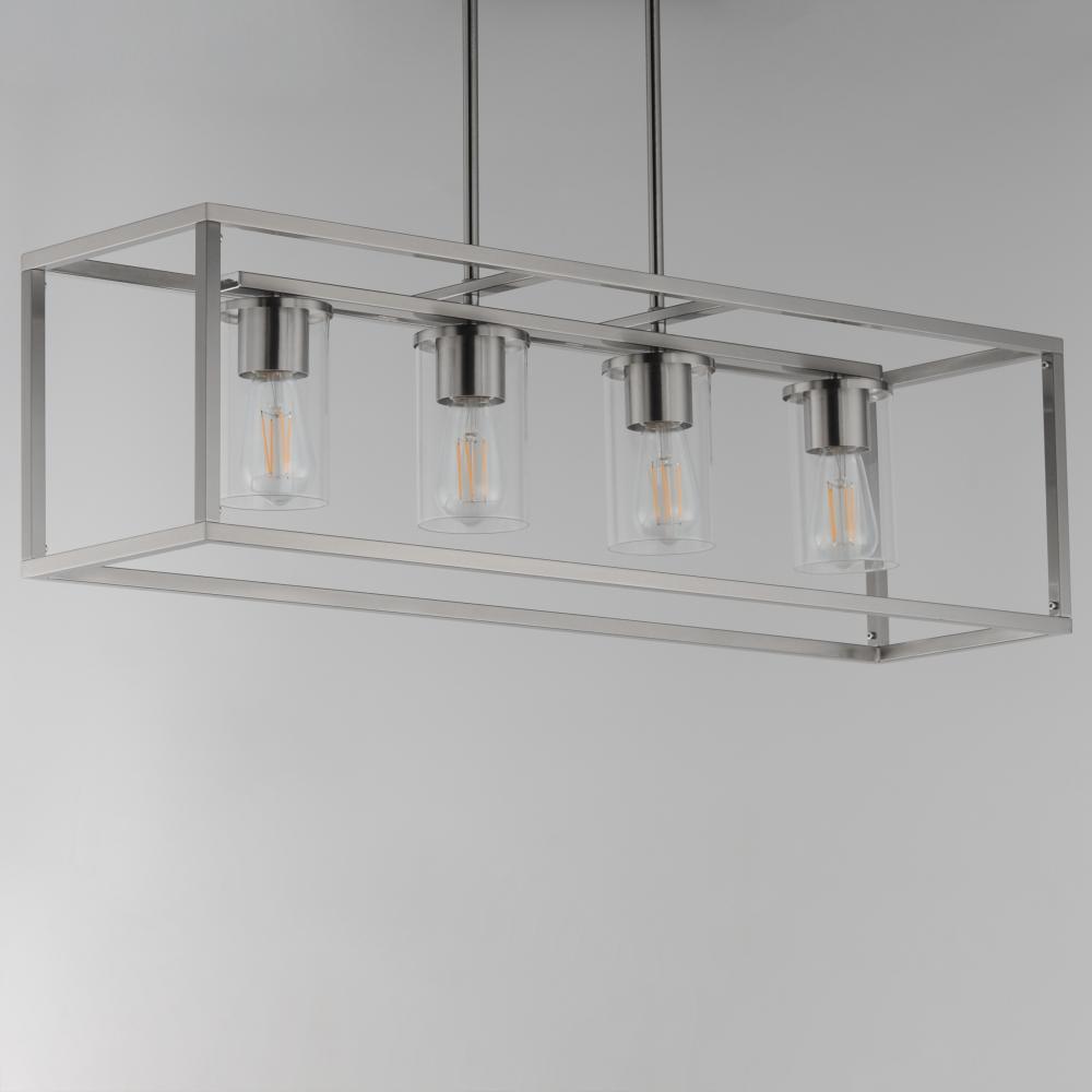 A clean design for the most common applications, the Lateral collection offers chandeliers in both traditional configurations and within a rectangular frame for above dining spaces. Finished in complementary colors including Satin Brass, Satin Nickel or Ma